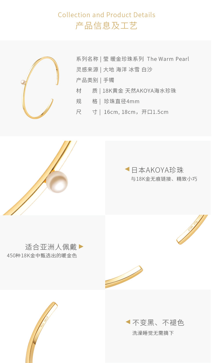 YIN「莹」暖金珍珠系列18K金AKOYA珍珠手镯