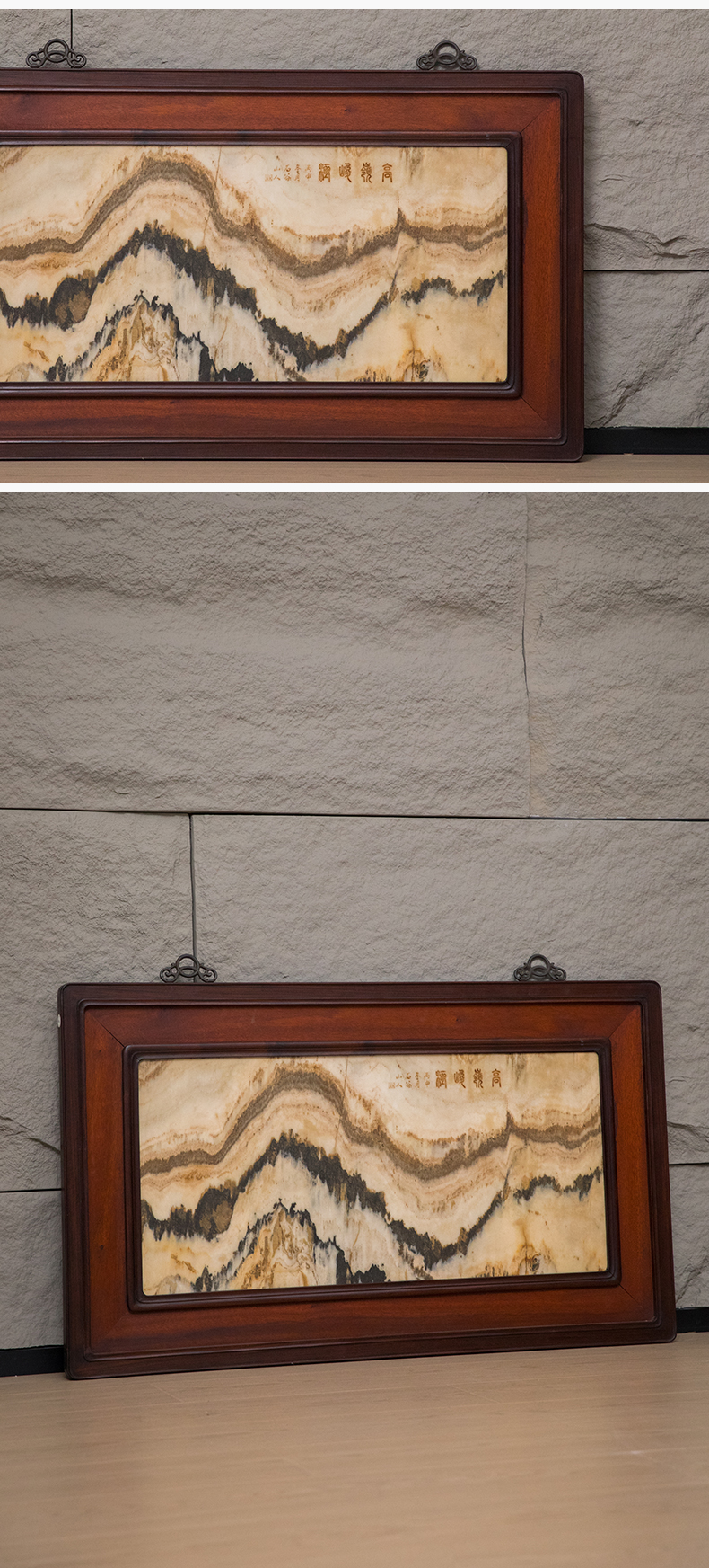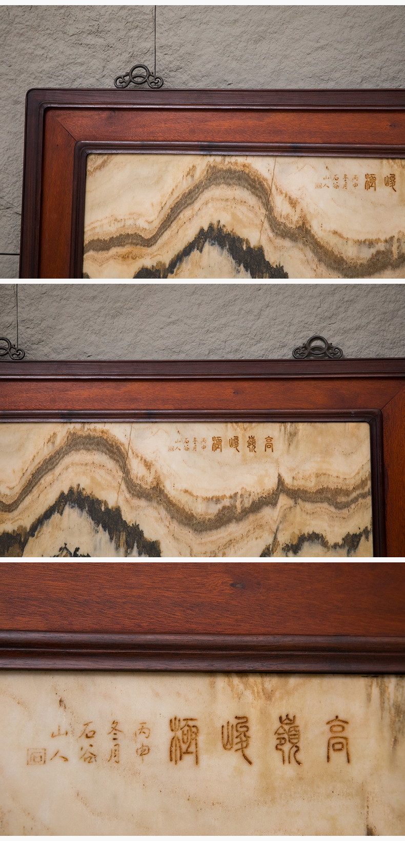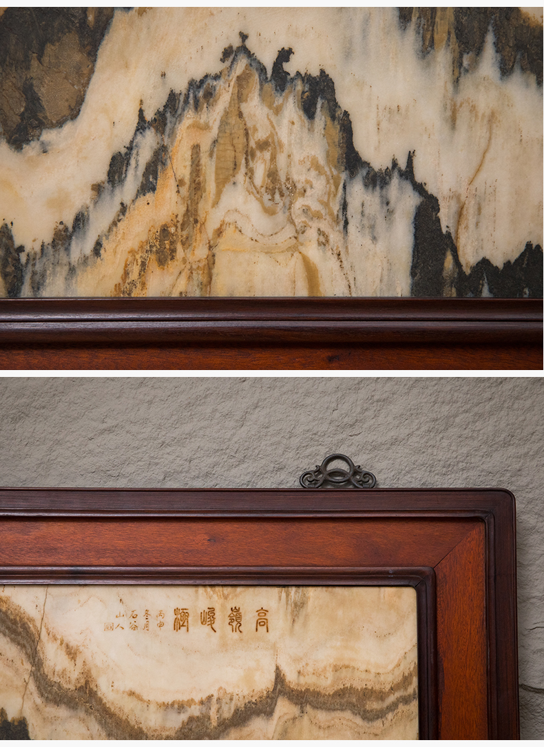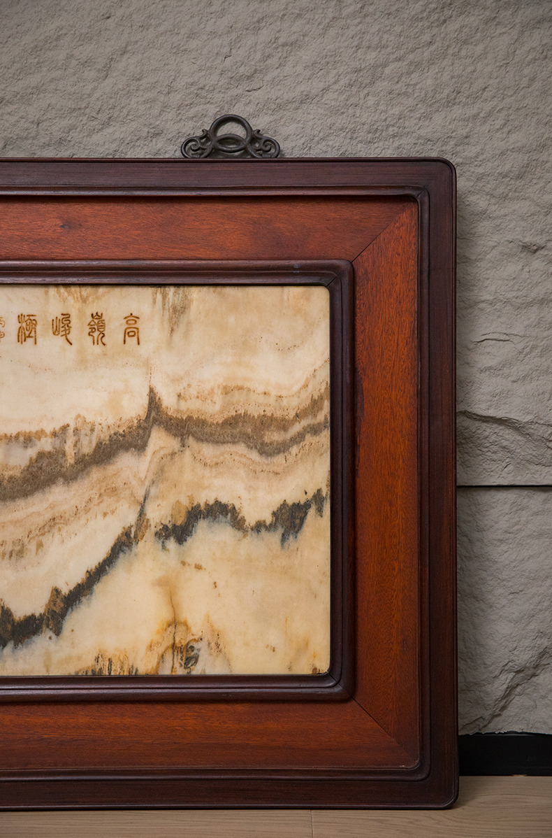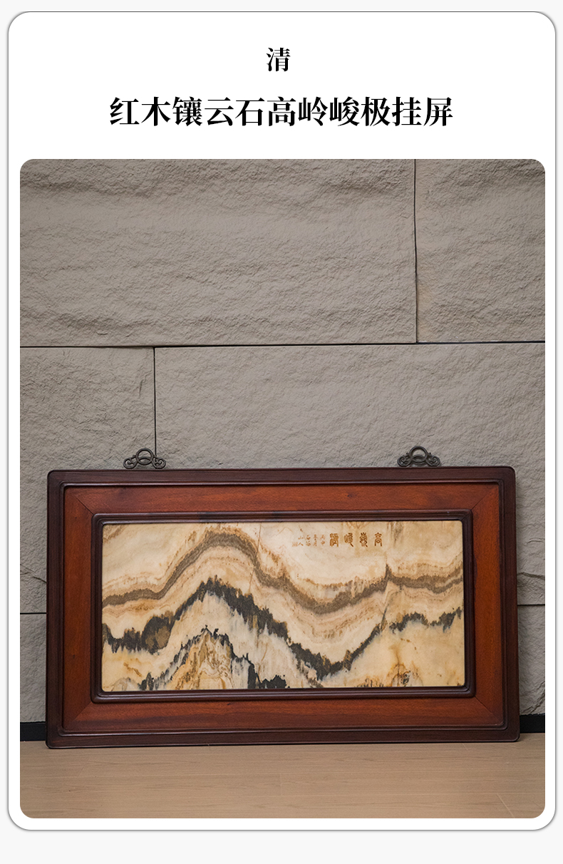 清 红木镶云石高岭峻极挂屏