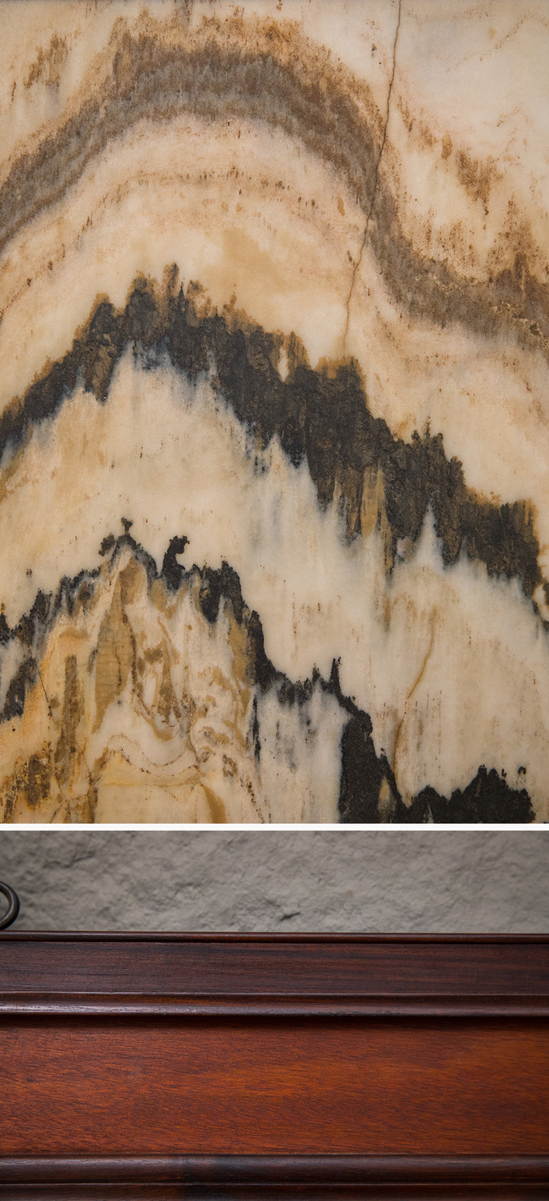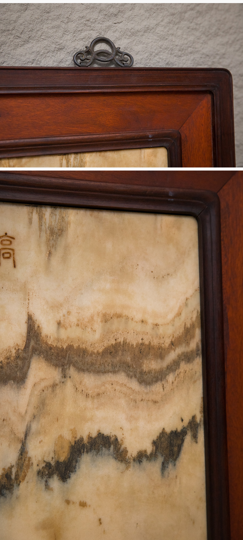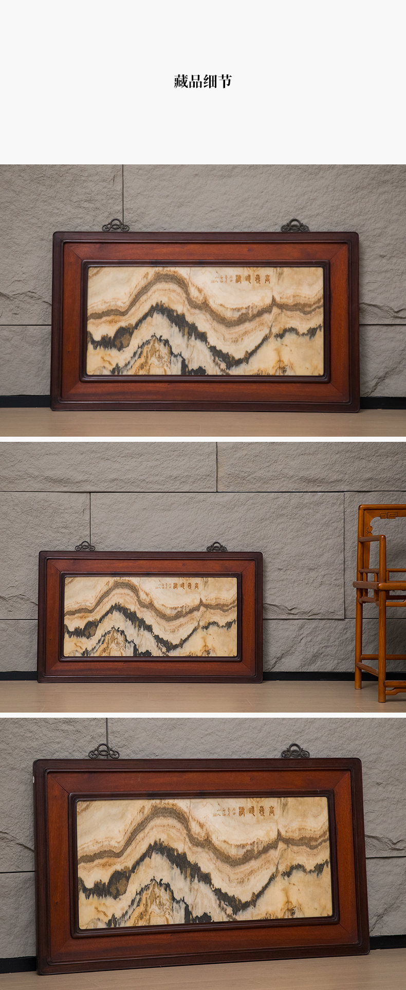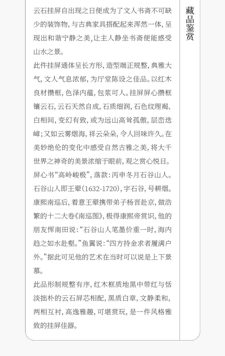 清 红木镶云石高岭峻极挂屏