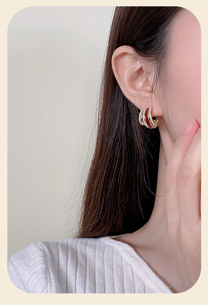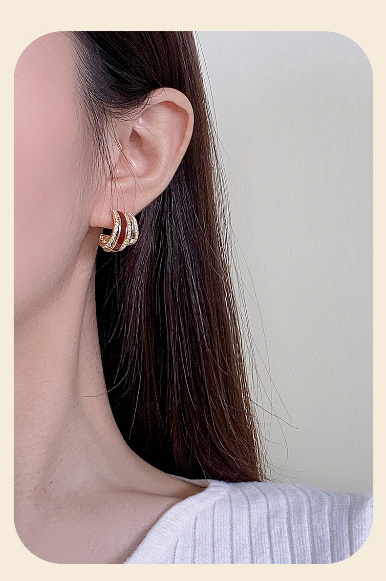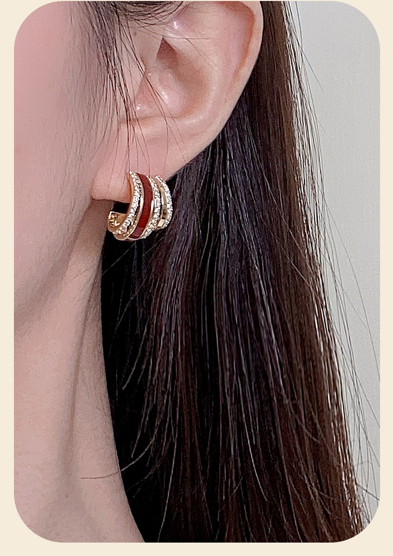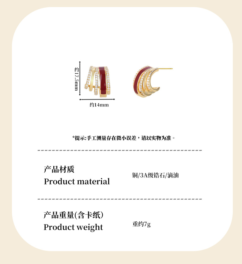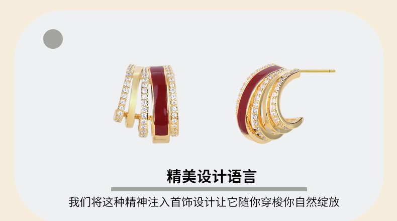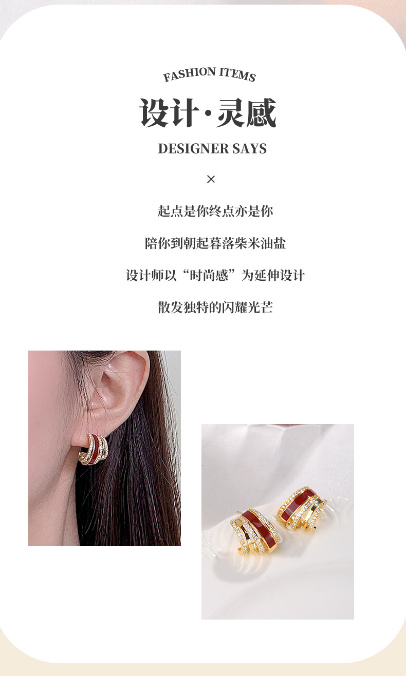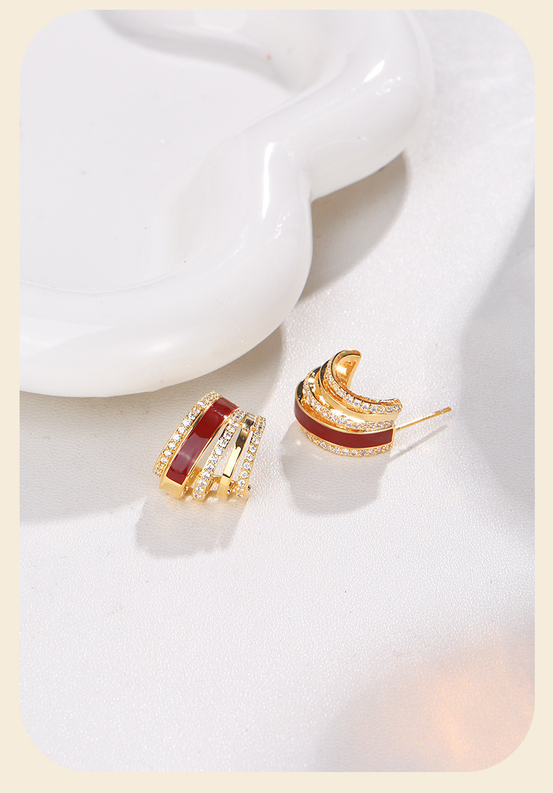 雀说复古港风小香风红色轻奢锆石耳钉时尚气质耳饰925银针耳环高级感ALW19275B