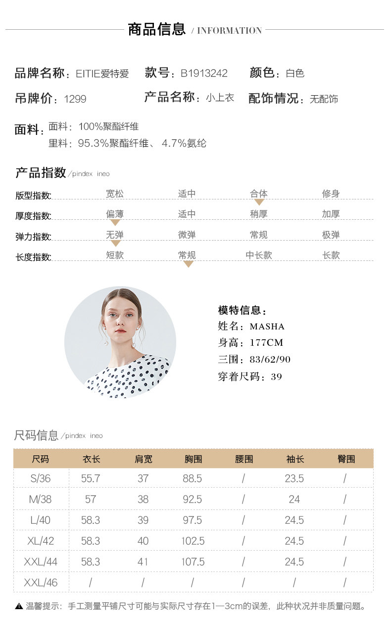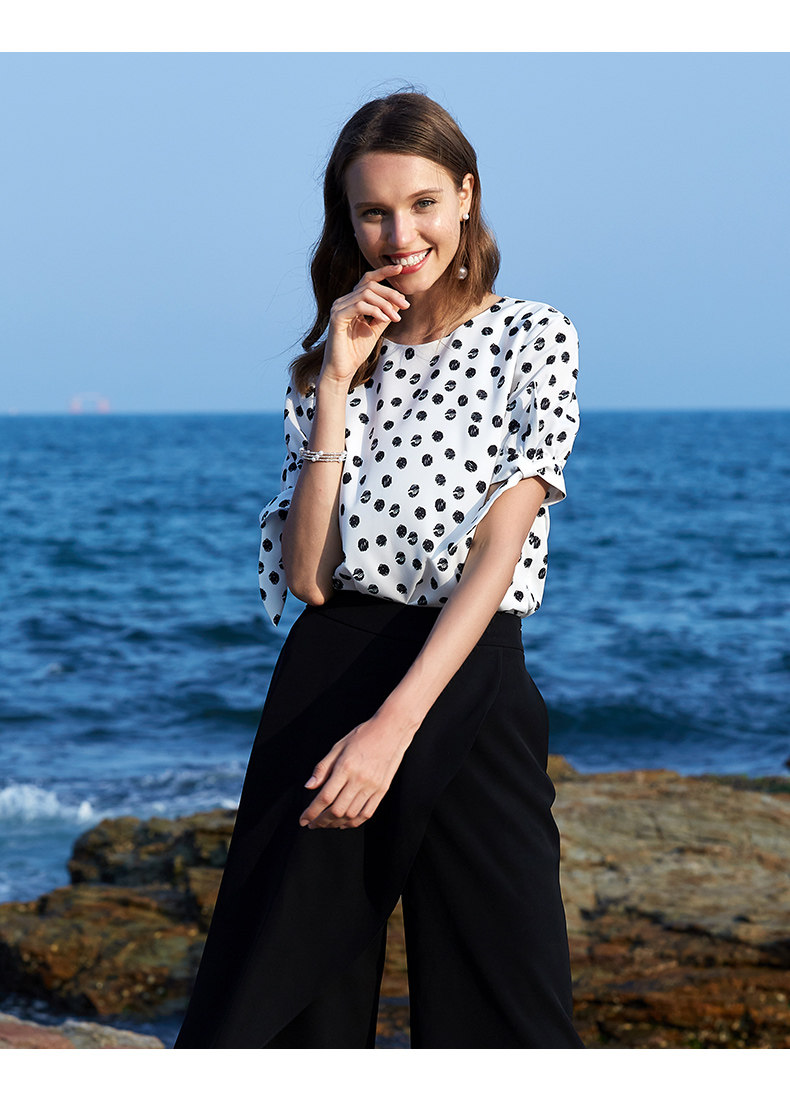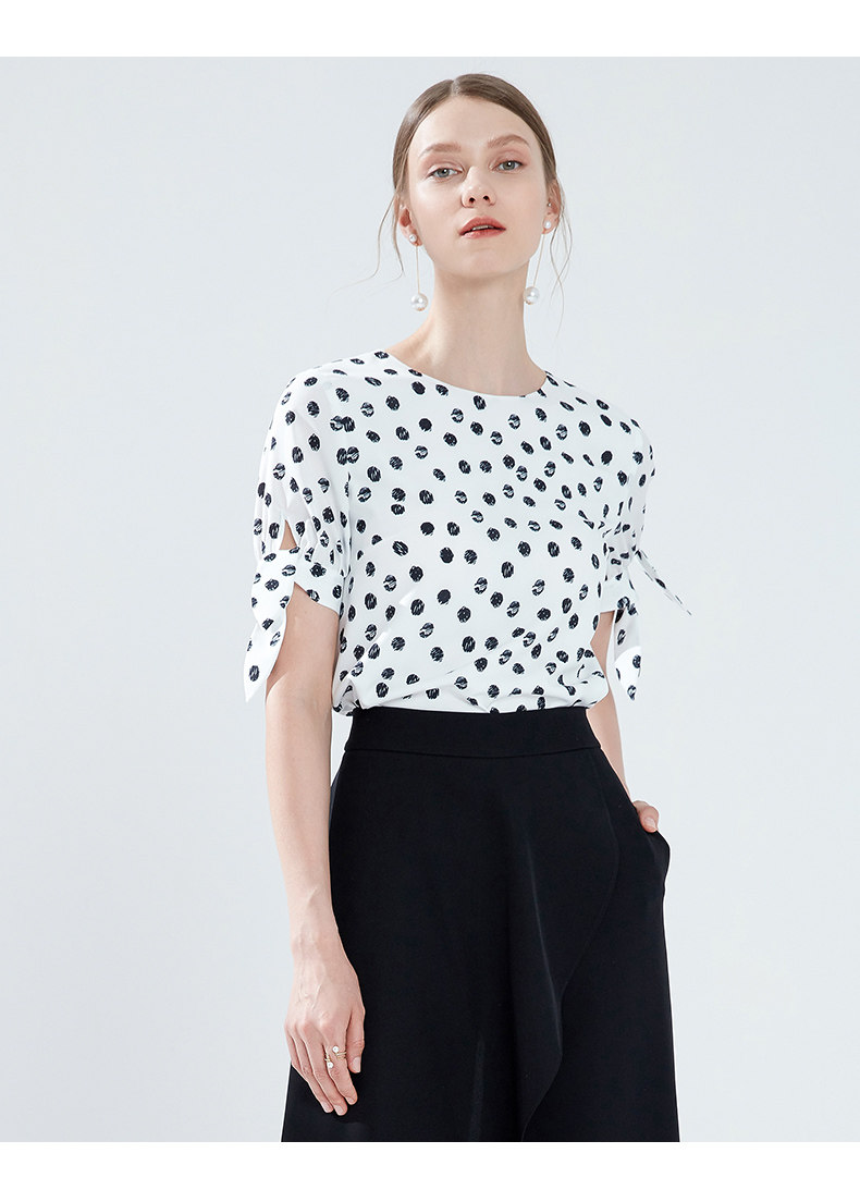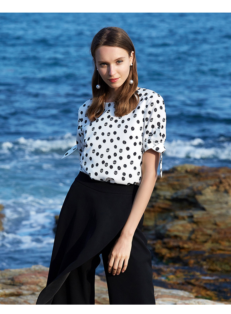 EITIE爱特爱女装夏季新款百搭气质时尚圆领波点印花小上衣t恤B1913242