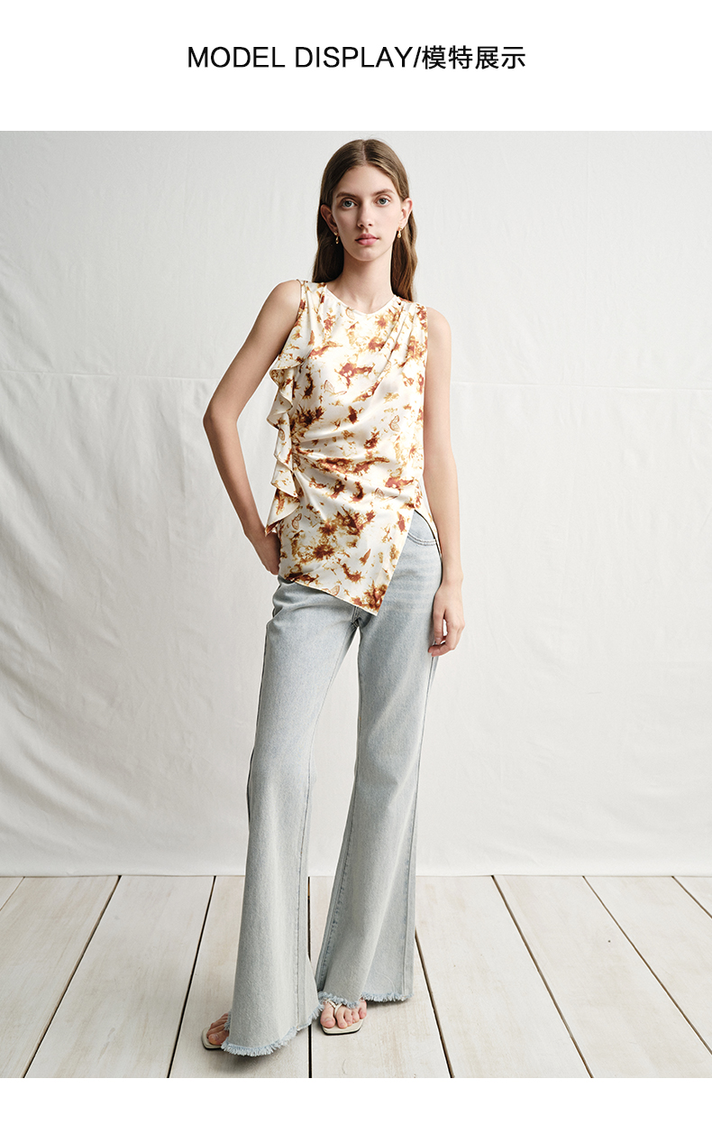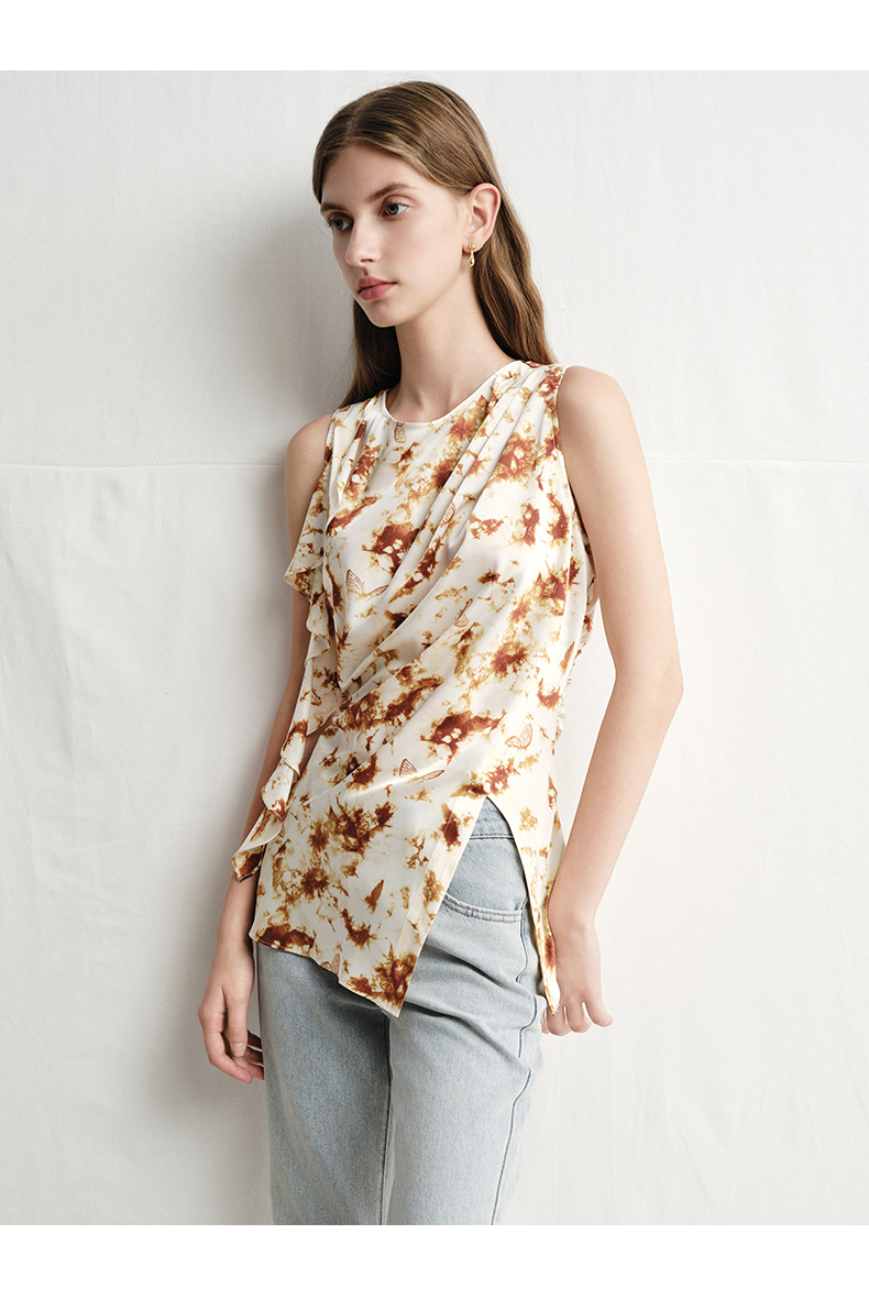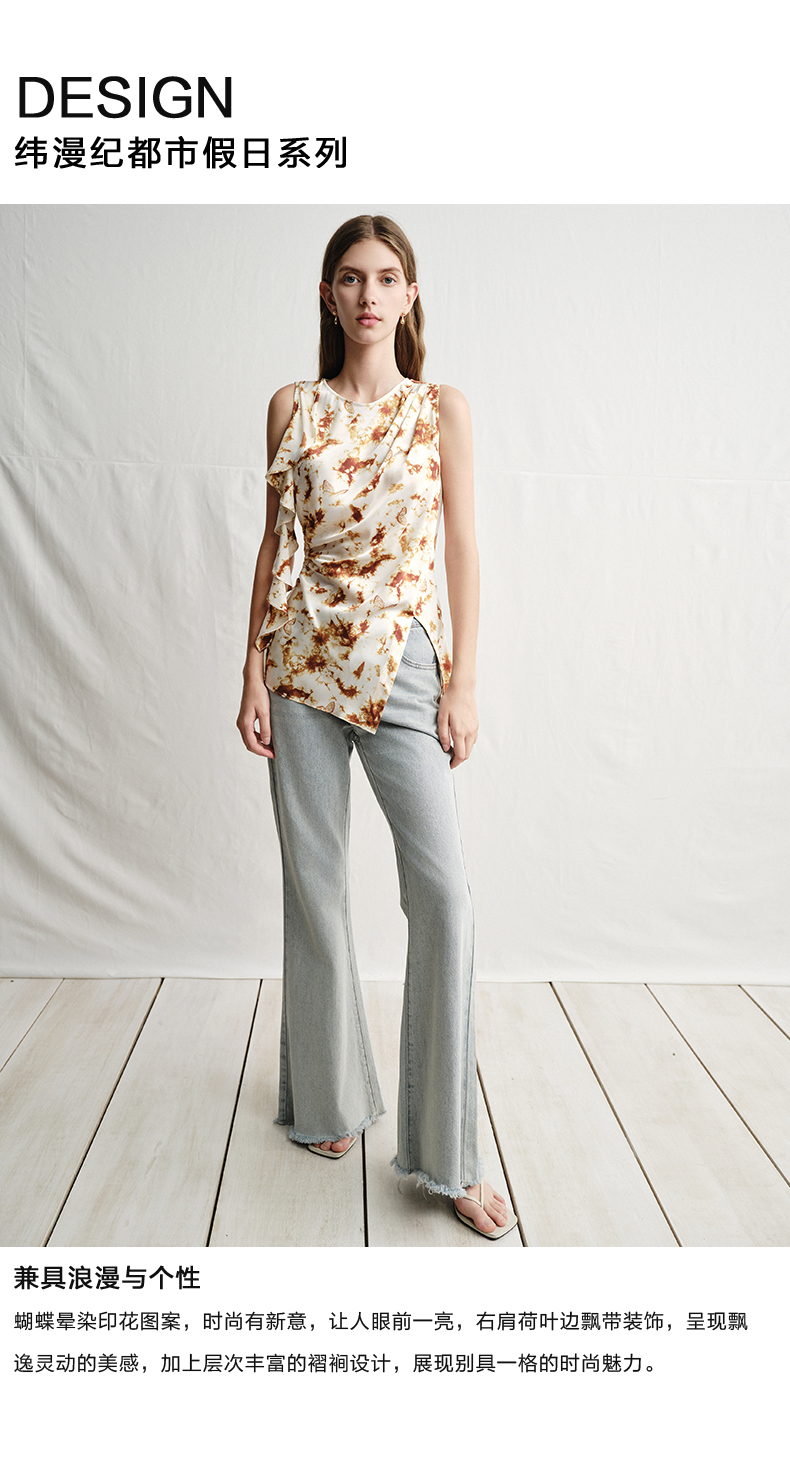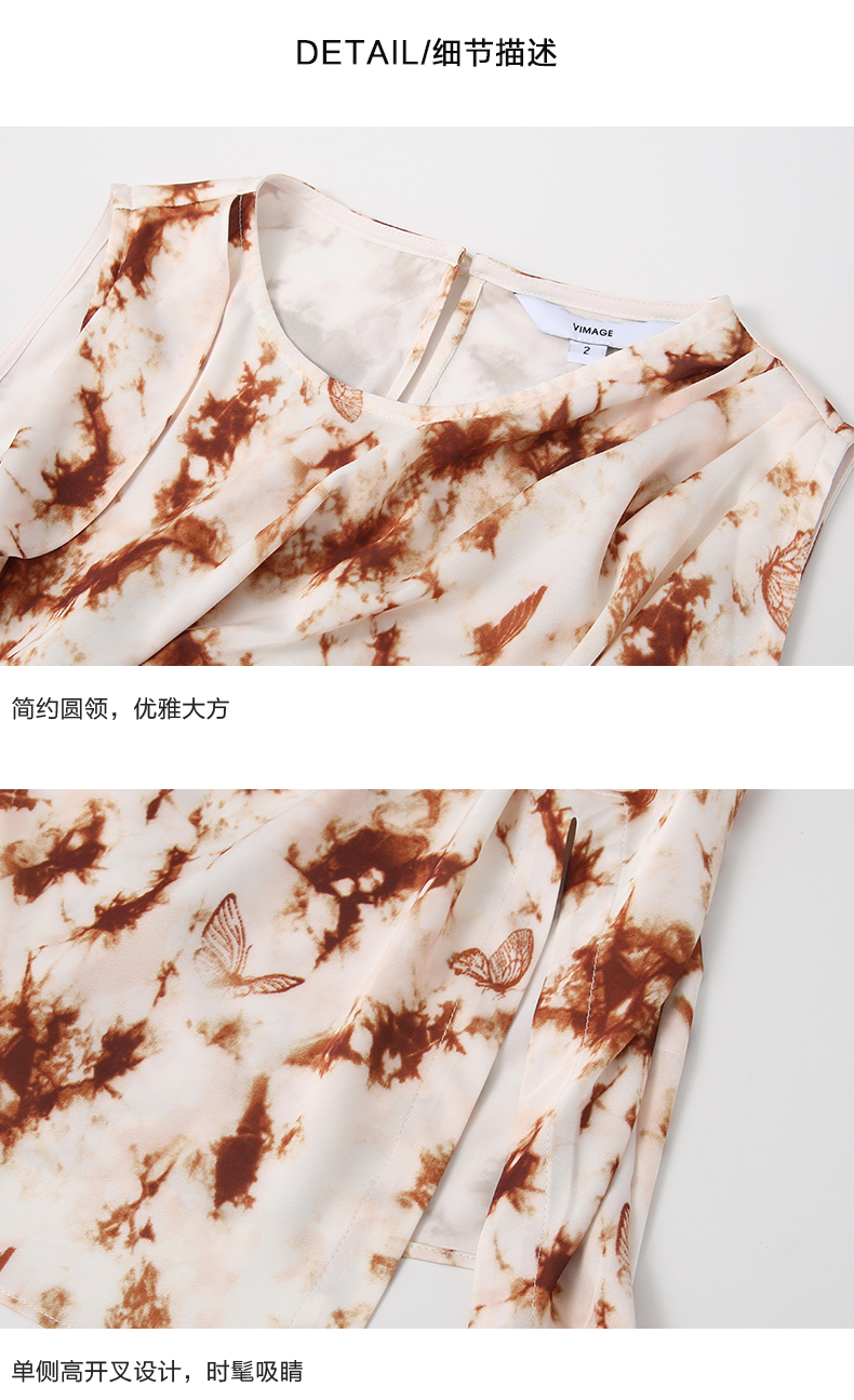 VIMAGE纬漫纪春夏季新款修身打底高级无袖小众设计印花上衣V2313916