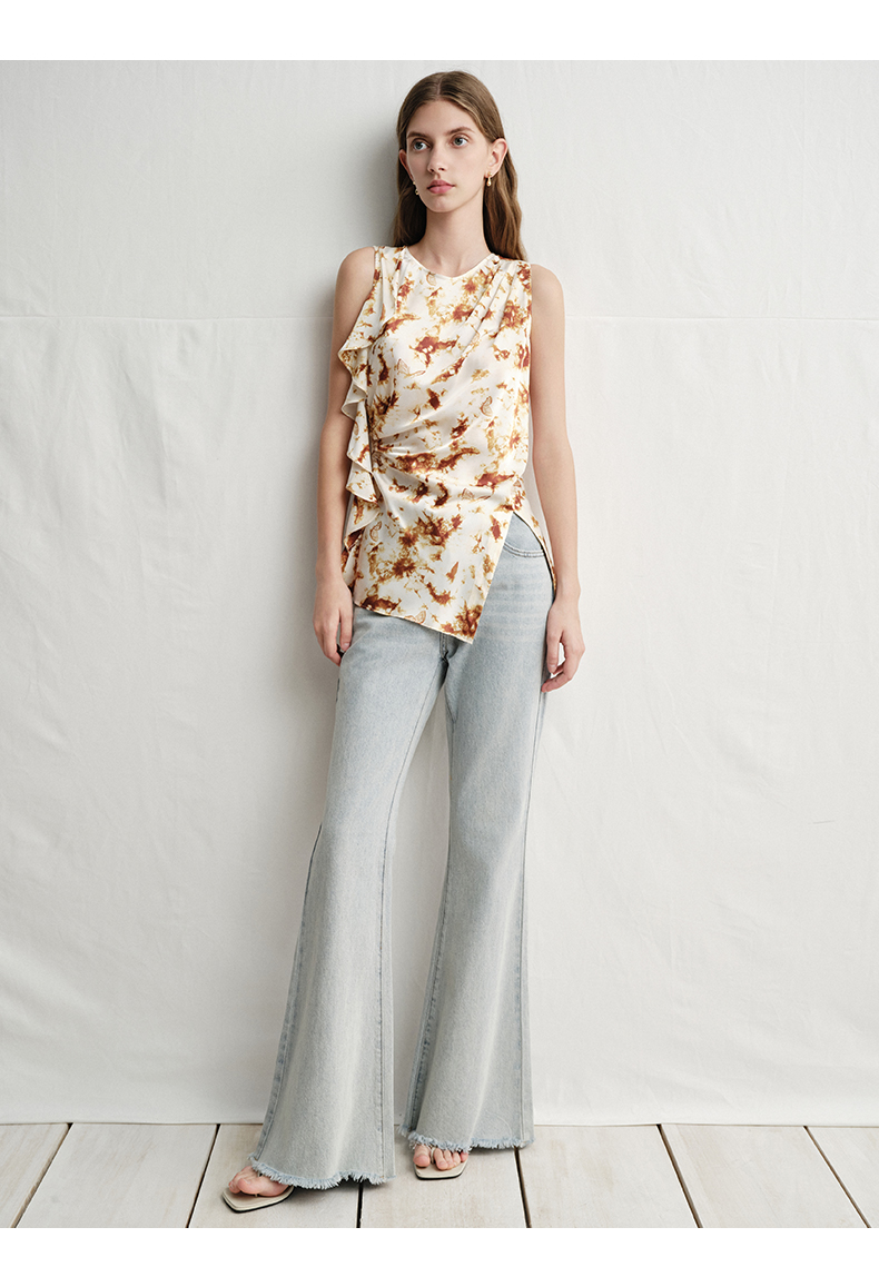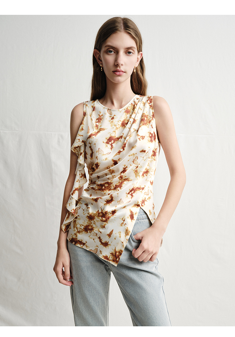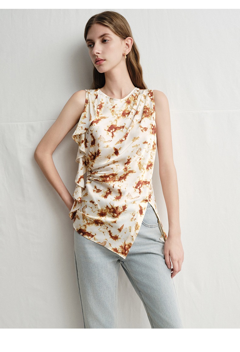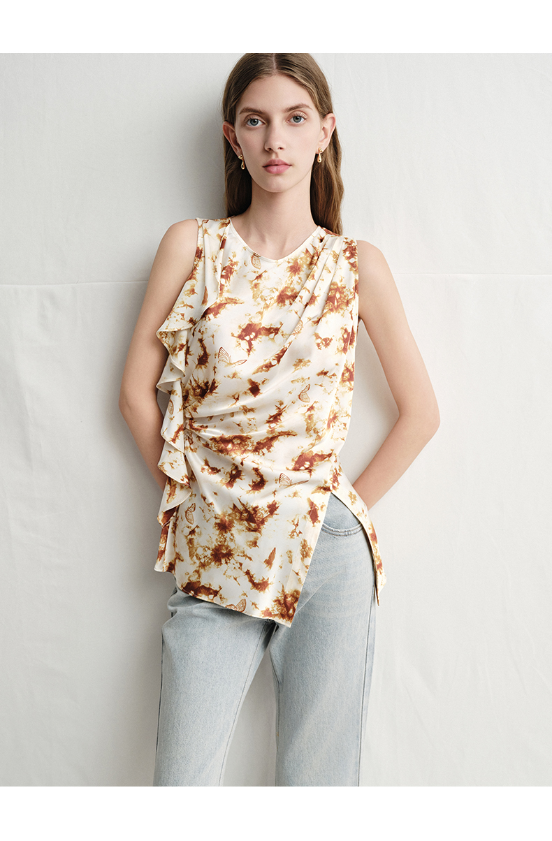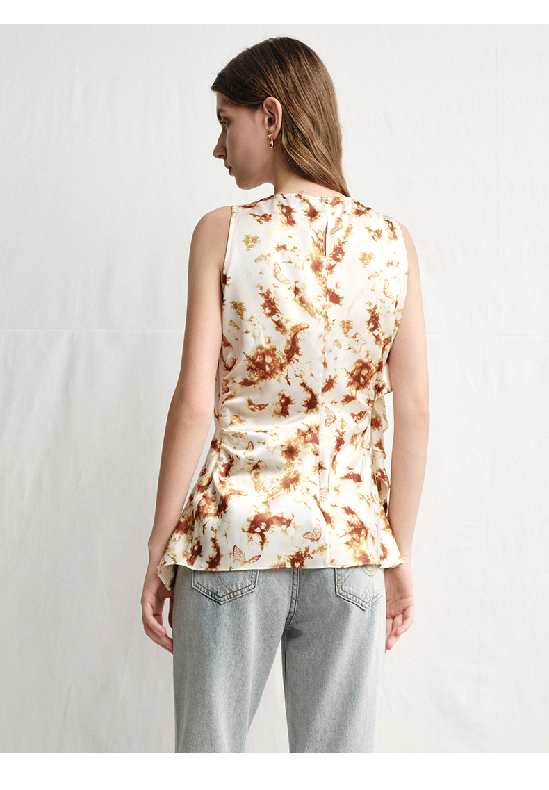 VIMAGE纬漫纪春夏季新款修身打底高级无袖小众设计印花上衣V2313916
