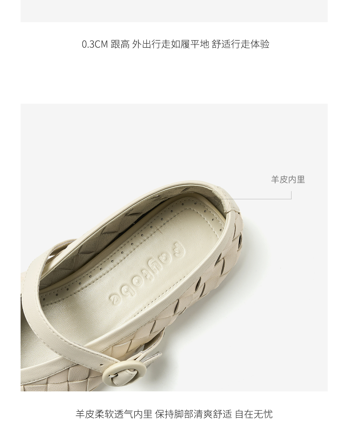 FAYTOBE 玛丽珍25春夏松弛罗马舒适平底鞋一字扣浅口编织单鞋女