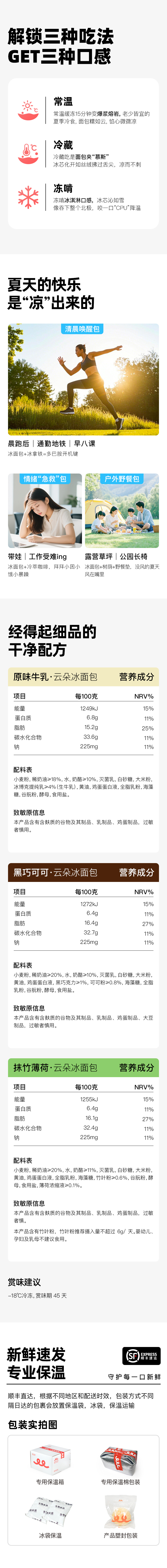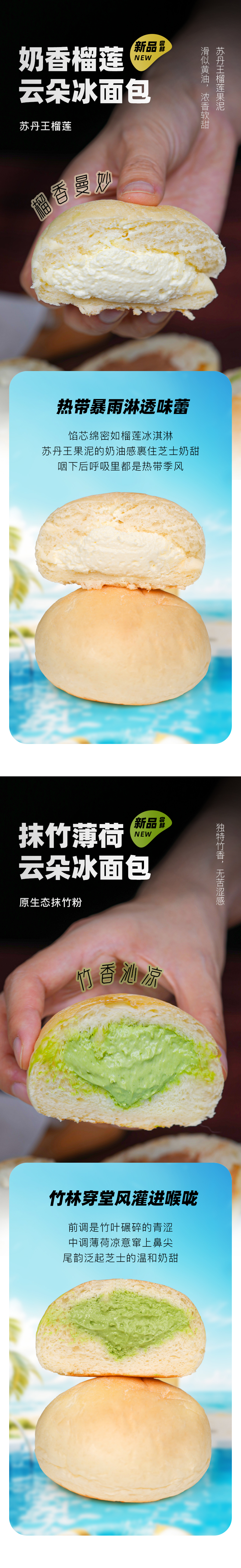 爆浆云朵冰面包 夹心软欧 原味牛乳 黑巧可可 抹茶薄荷 奶香榴莲