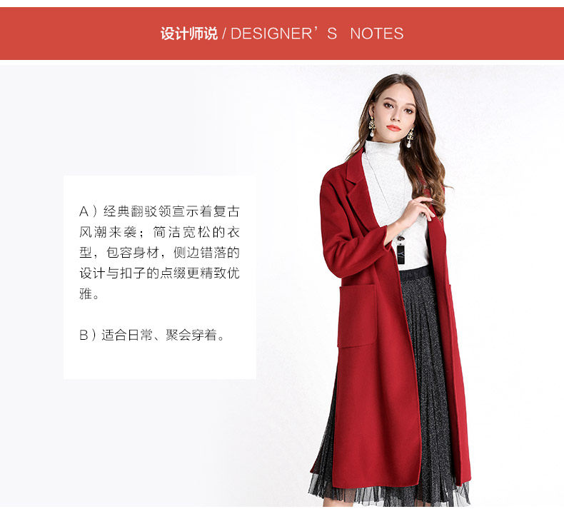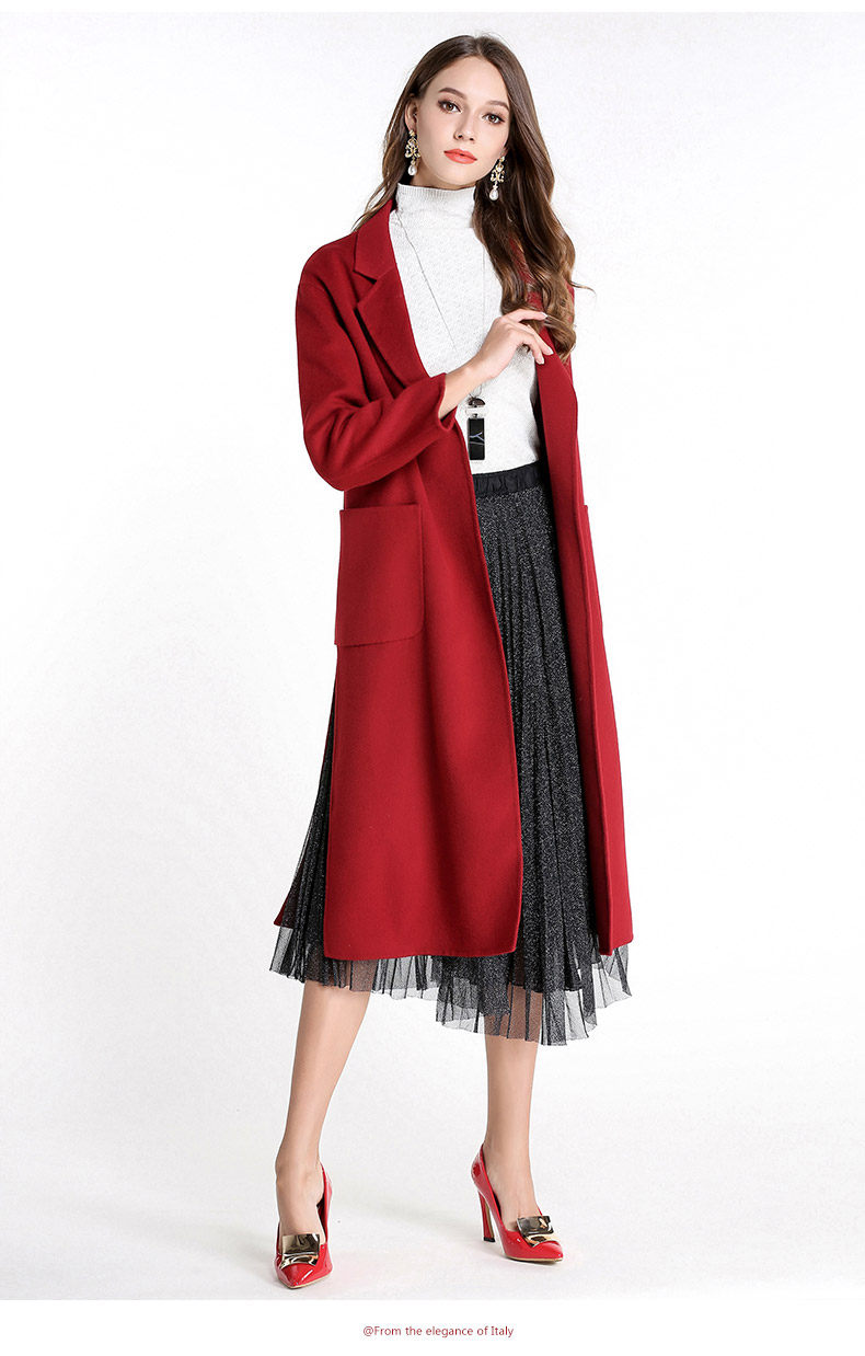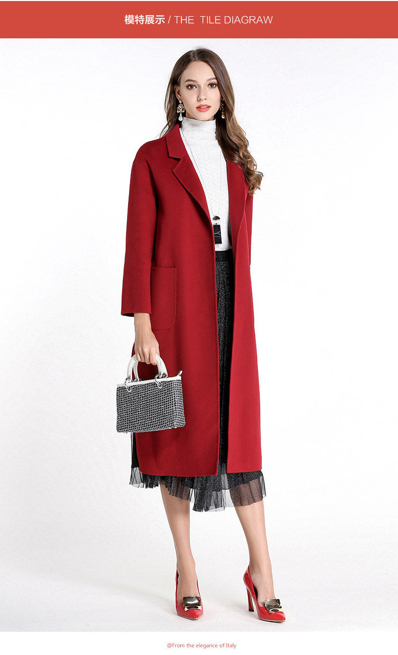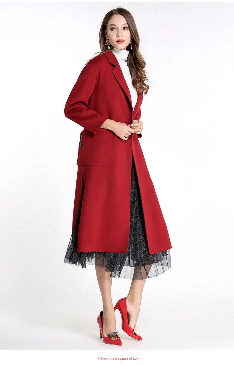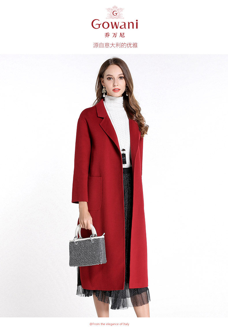 乔万尼流行外套修身气质西装领羊毛呢子大衣过膝长款EL4A521