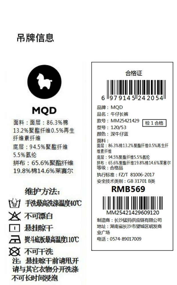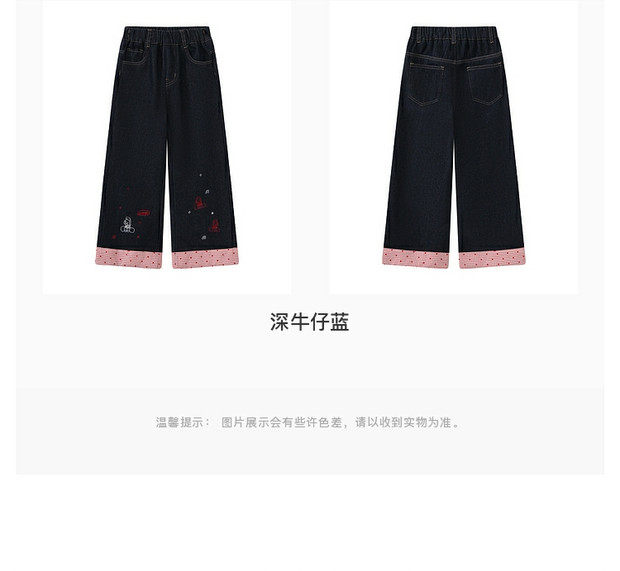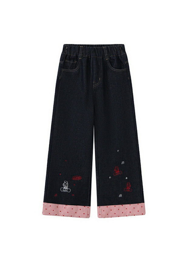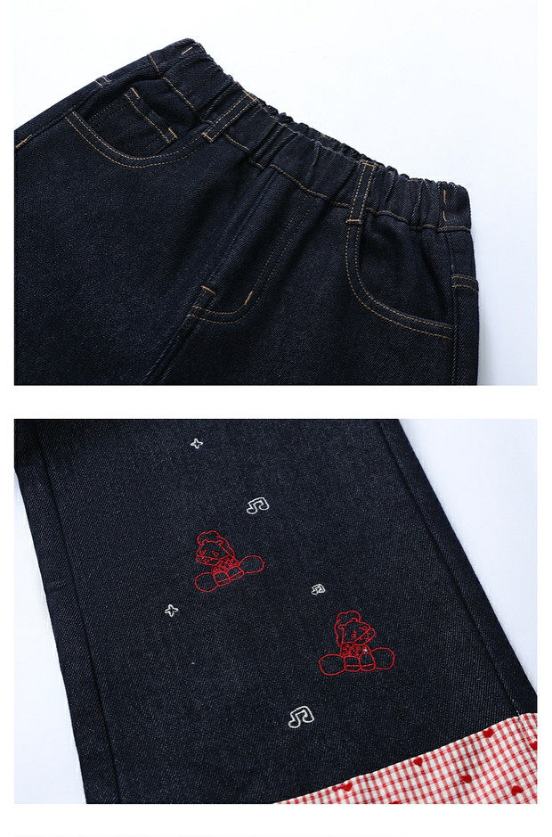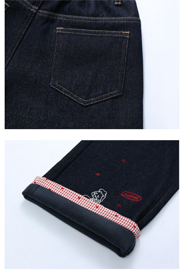 【MQD】童装女大童冬季新款儿童可爱萌趣卡通裤子加厚奥利绒牛仔裤
