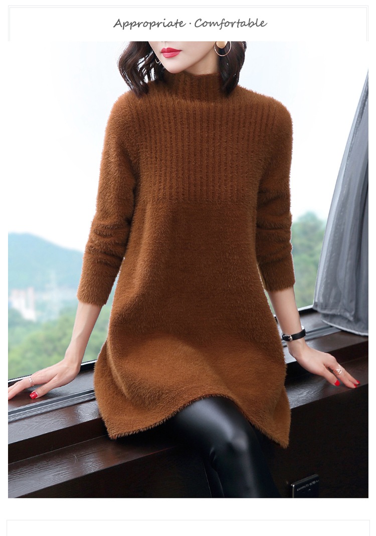 新款仿水貂毛中长款宽松大码打底衫CC-32-5736