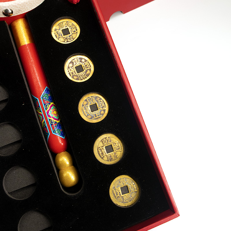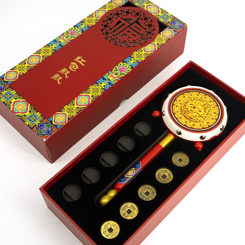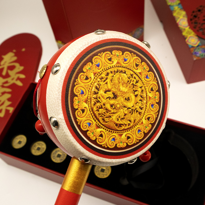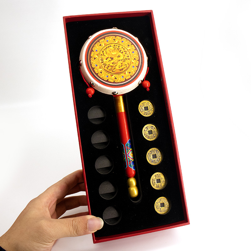 红包鼓鼓 拨浪鼓礼盒 内含仿古五帝钱一套、红包贺卡