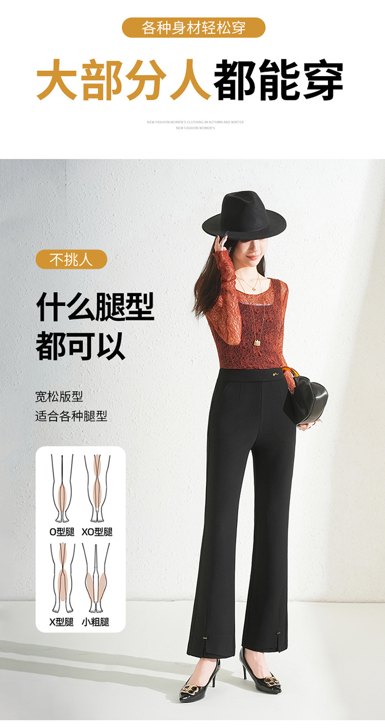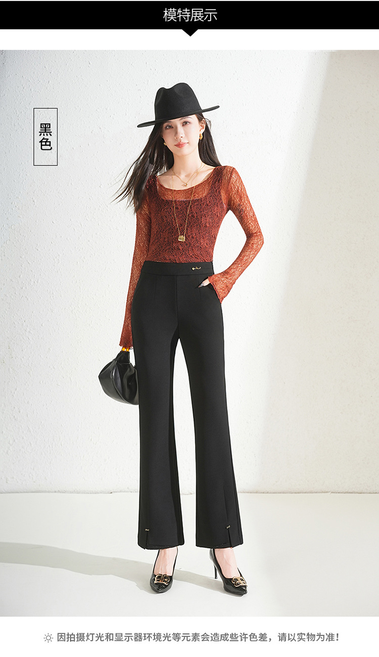 QYM 5208-Y时尚高腰微喇裤气质高腰开衩休闲喇叭裤 商品图2
