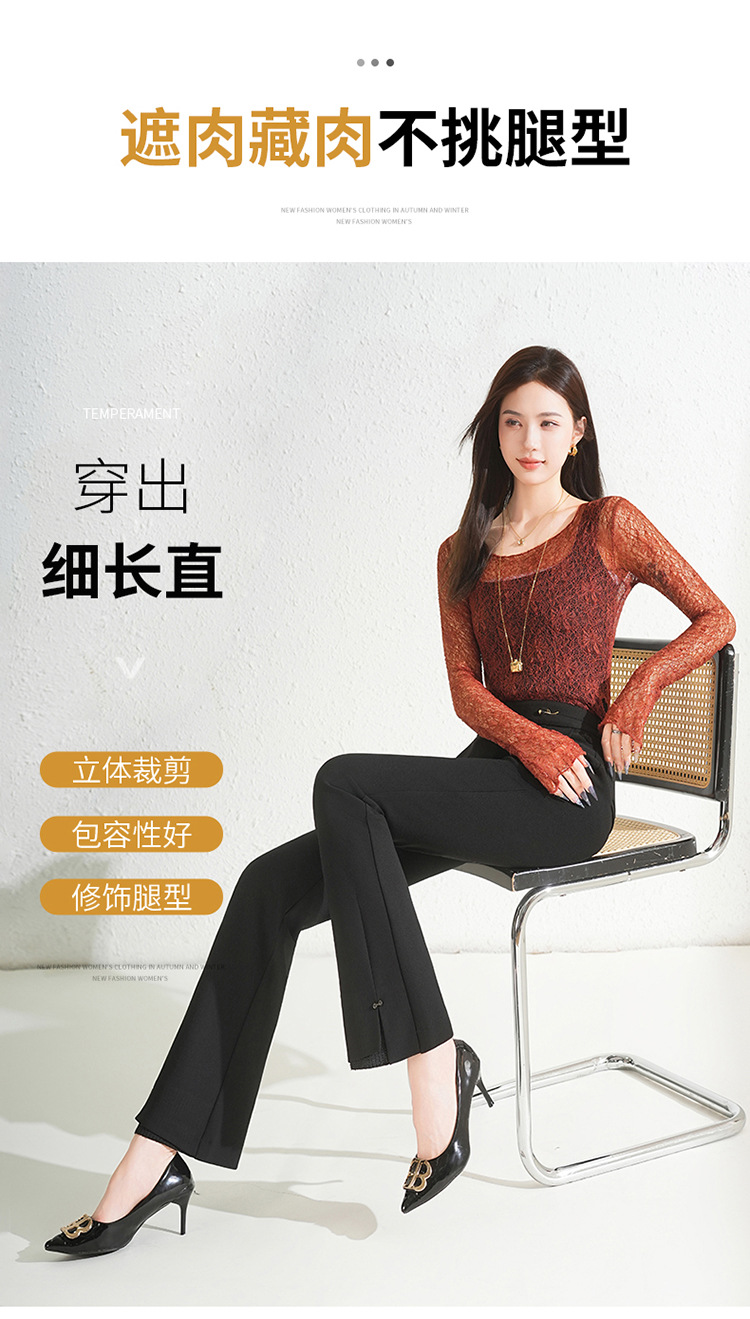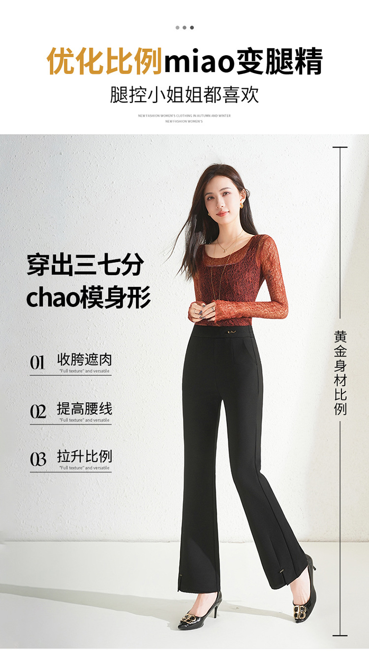 QYM 5208-Y时尚高腰微喇裤气质高腰开衩休闲喇叭裤 商品图3