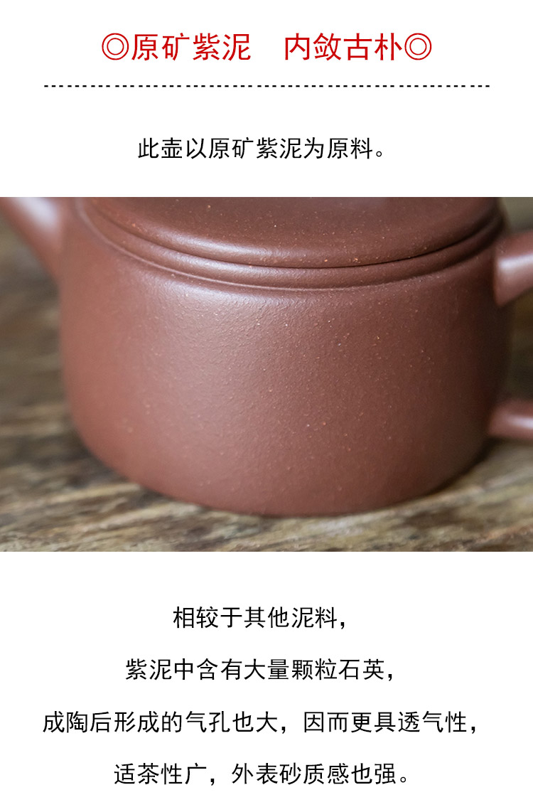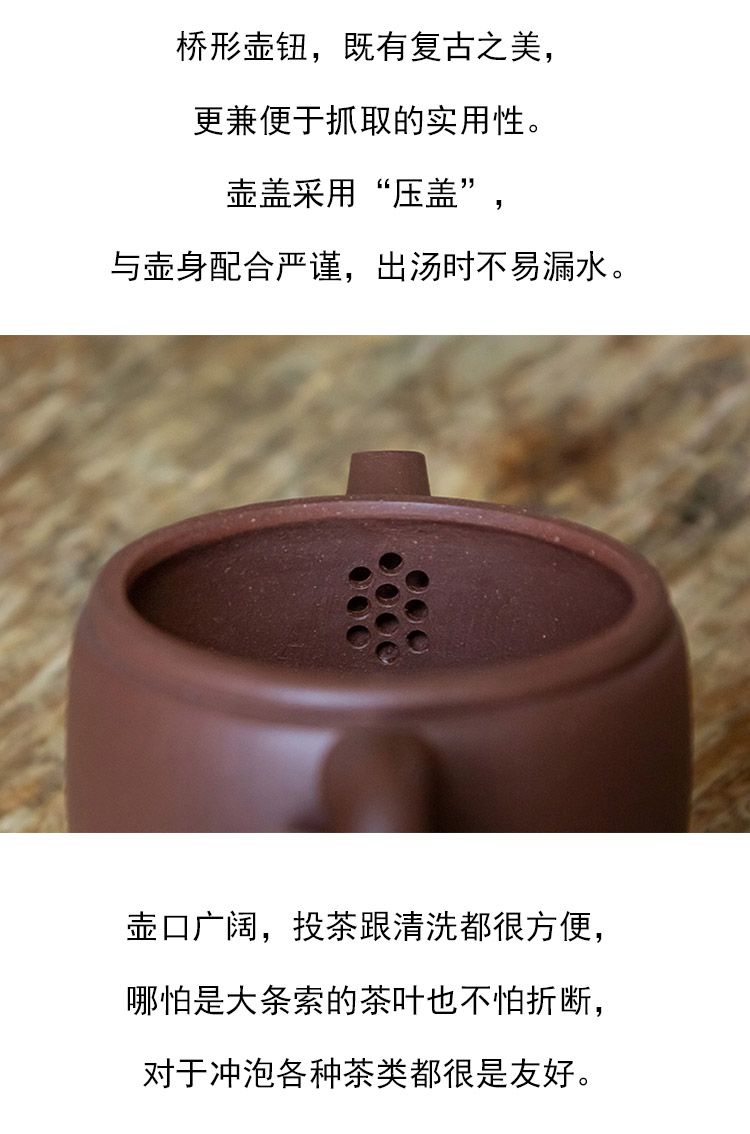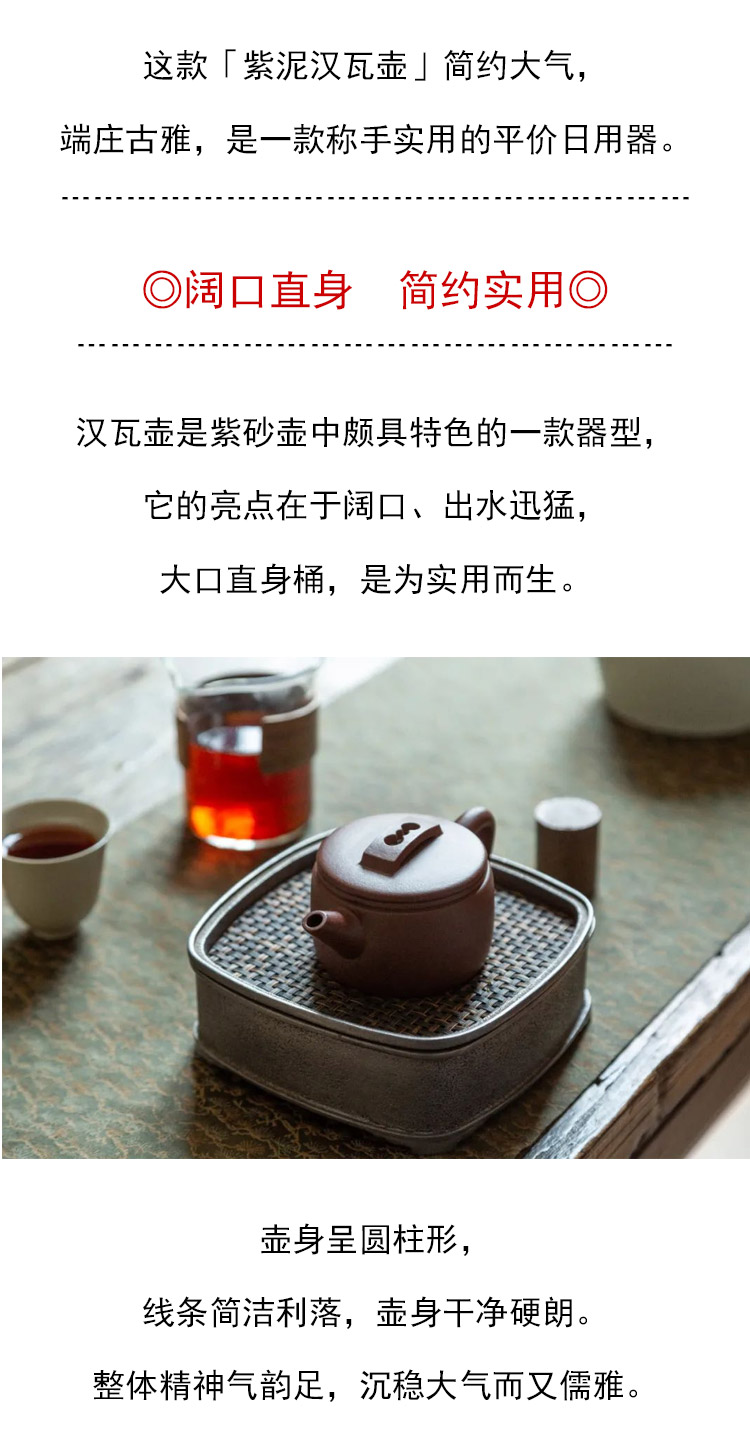 茶香记 紫砂壶 紫泥汉瓦壶 经典壶型 简约大气 沉稳端庄 阔口实用