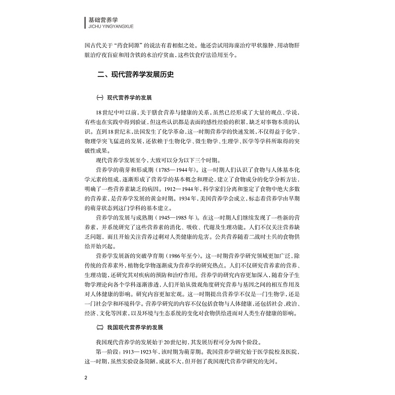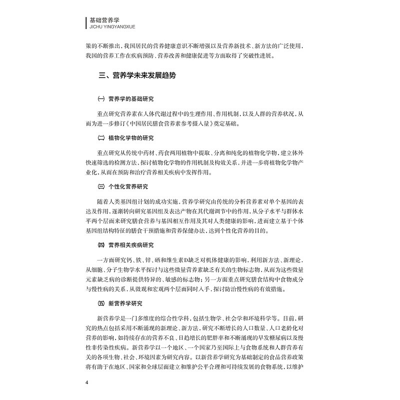 营养学基础是营养科学的重要组成部分,发展则从理论开始,即营养素的研究及其需要量确定了营养学理论的开端。在确定了人体对营养素的需要,之后就发展成为诸如食物营养及食物中其他营养活性成分的开发。本教材以营养素为主线,涵盖食物消化吸收、营养素的性质及生理功能、食物营养价值特点、食物营养价值评价等内容。学生通过此门课程的学习,为后续的营养配餐、食品安全卫生、公共营养、特殊人群营养等课程奠定理论基础。本书共有12个章节,分别从人体消化系统及食物消化吸收、能量、蛋白质、脂类、碳水化合物、矿物质和维生素来展开,全方位解读人体所需营养方面的知识。