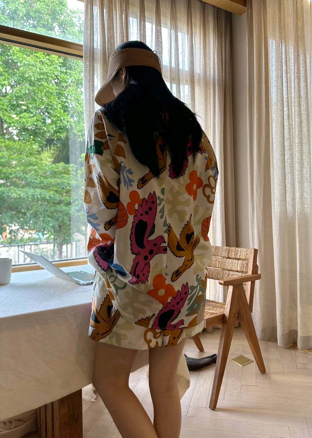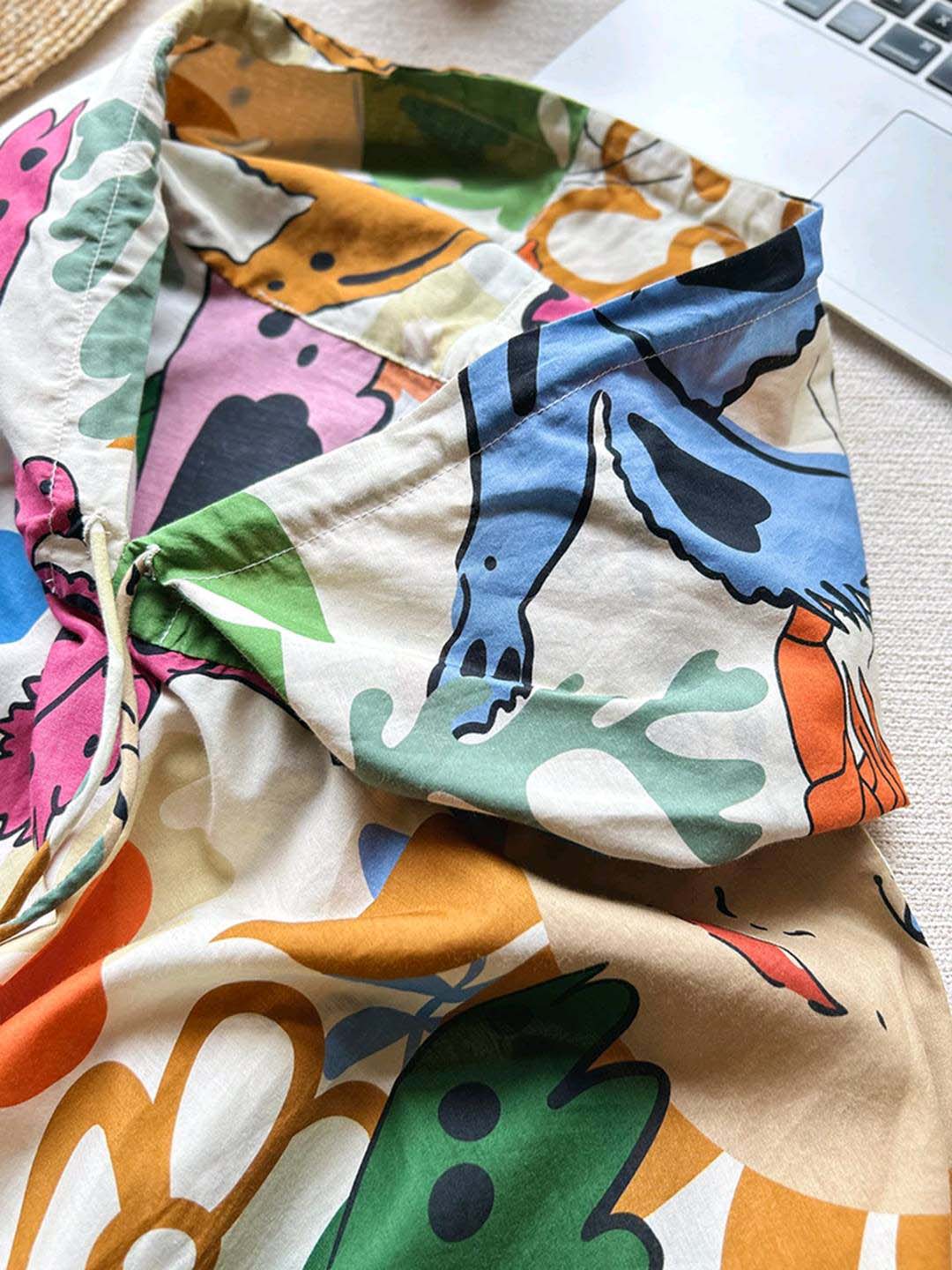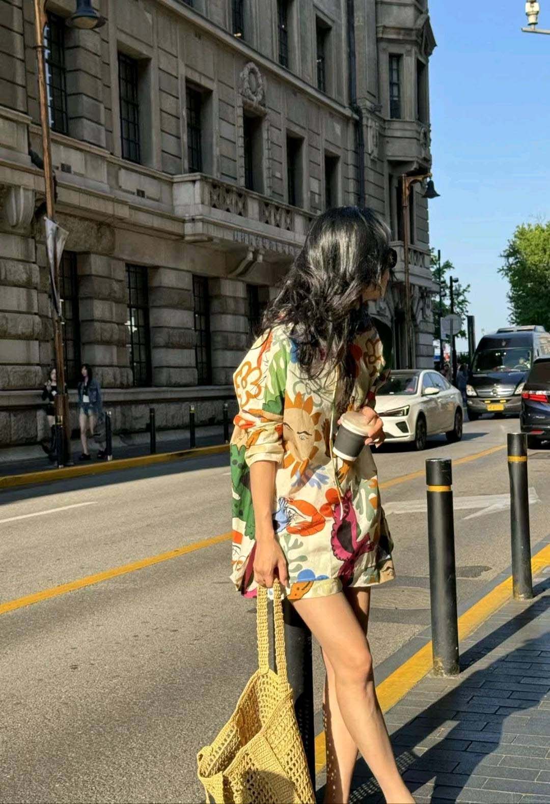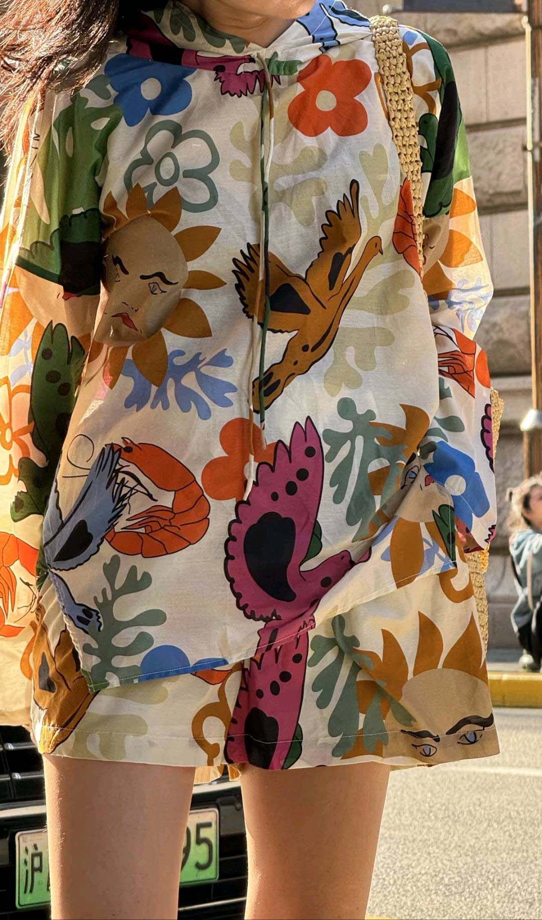 整套衣服印满涂鸦,颜色搭配超级好看