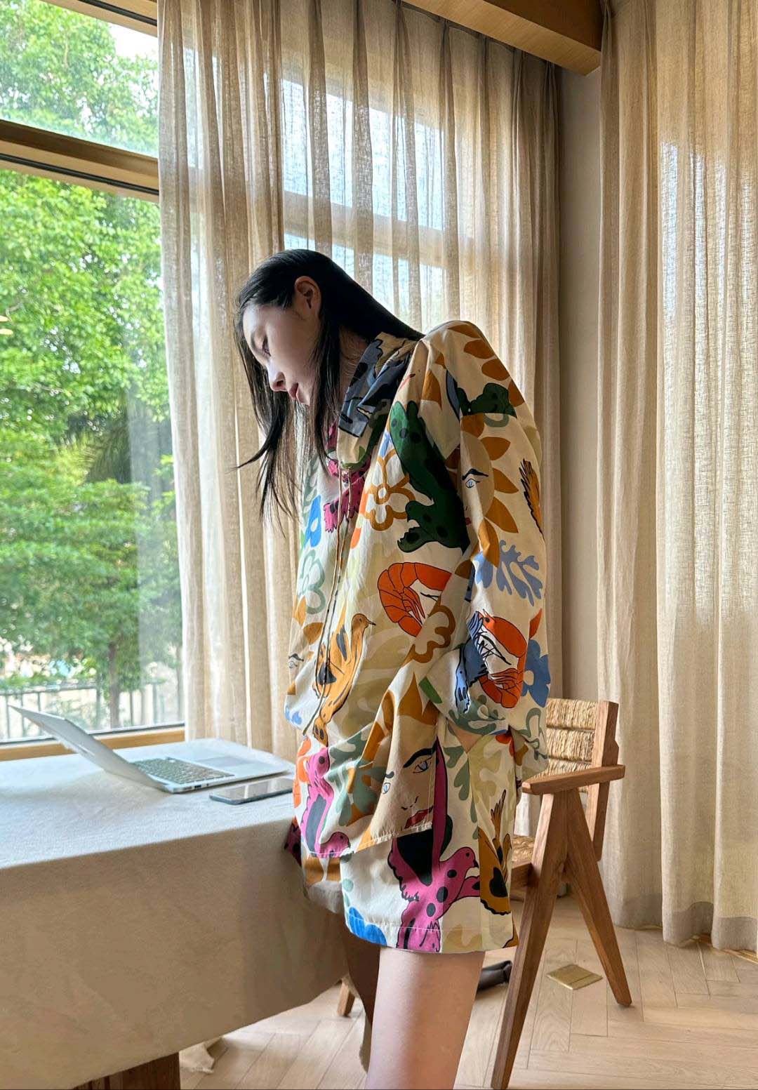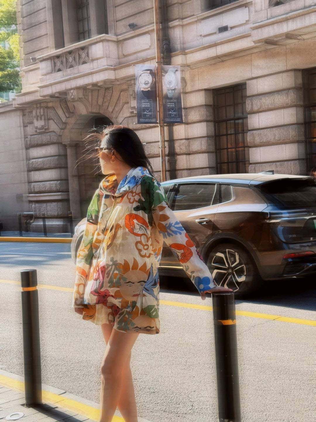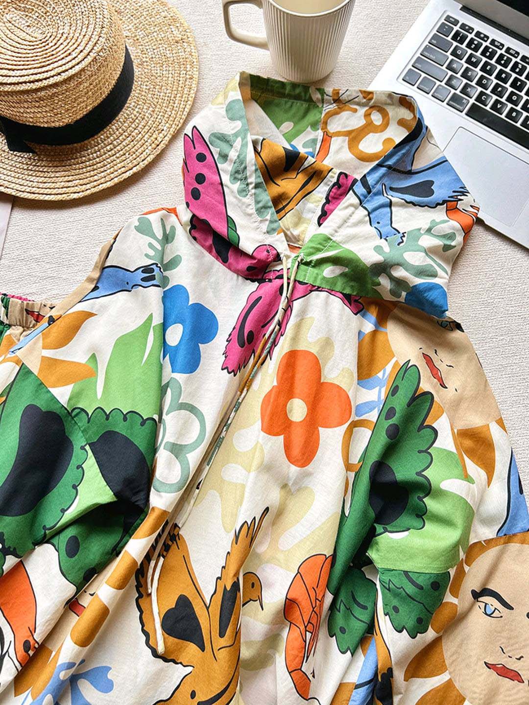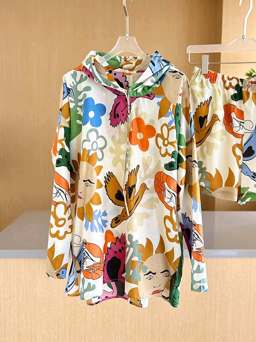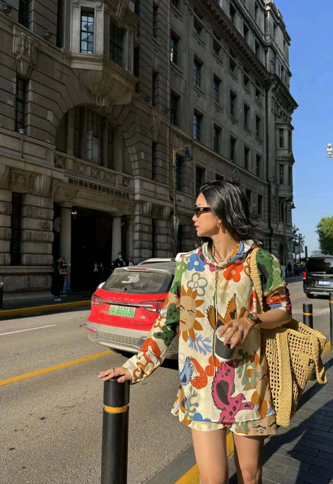 整套衣服印满涂鸦,颜色搭配超级好看