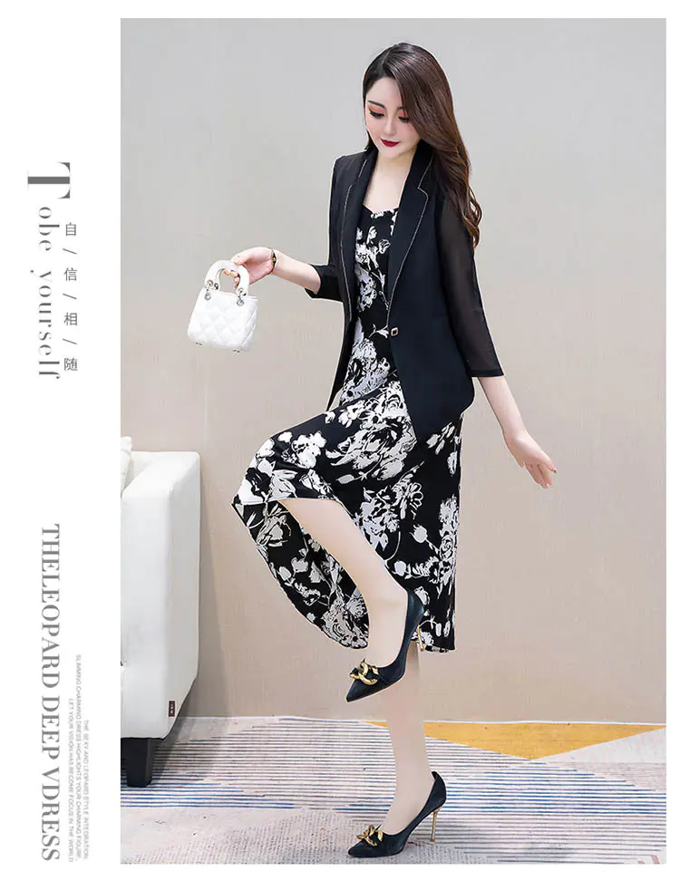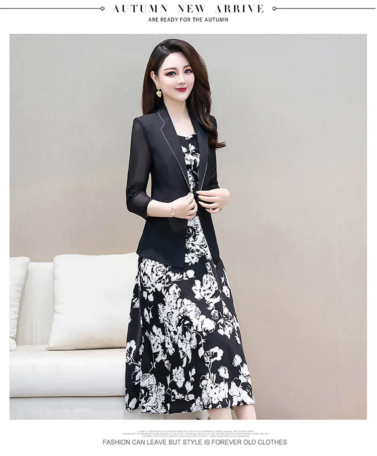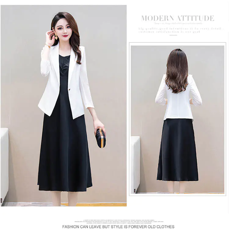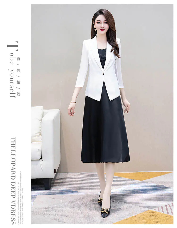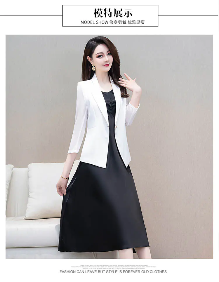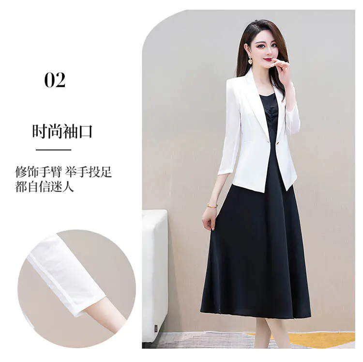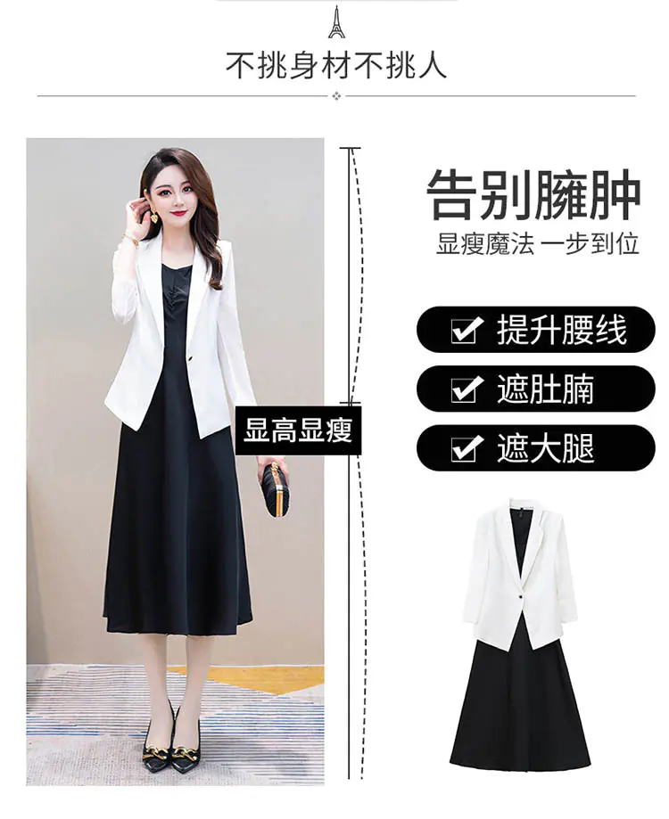 QYM-1122Q06新款时尚气质修身短款西装外套长款连衣裙两件套