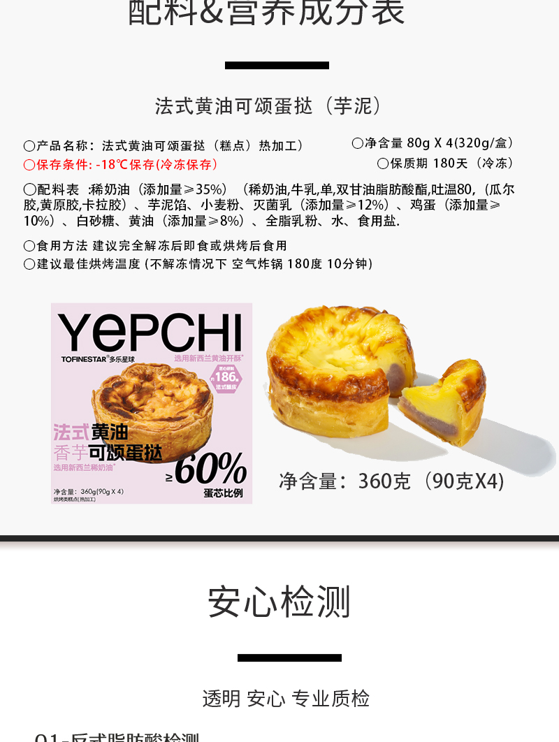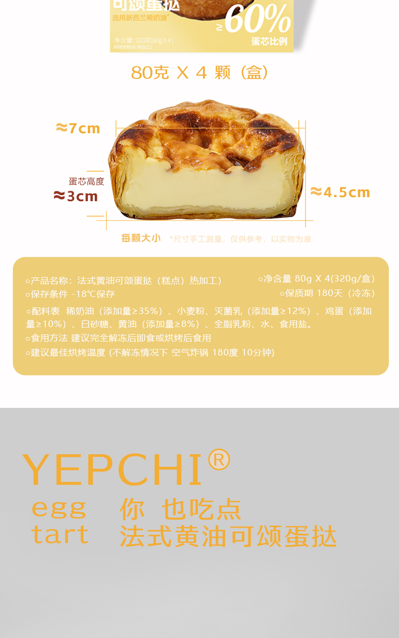 外壳酥脆 内芯丝滑 | 多乐星球法式黄油可颂蛋挞 甜点蛋糕零食 80g*4/盒*2盒/3盒装
