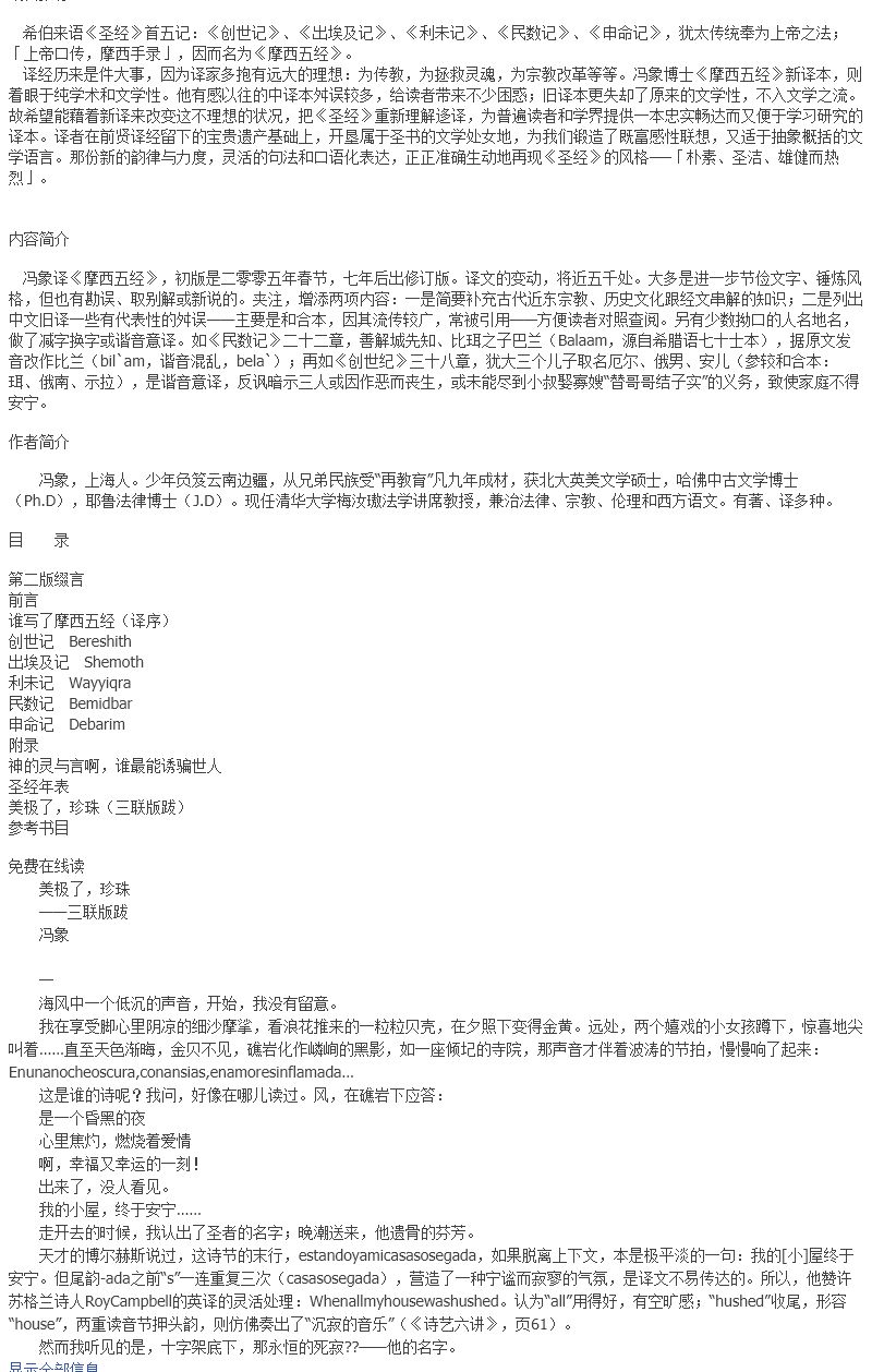 摩西五经(精装,希伯来圣经五部经典:创世记、出埃及记、利未记、民数记、申命记,冯象译注。香港初版七年后,修订将近五千处再版,大陆首次出版。译经是与圣者相遇。)