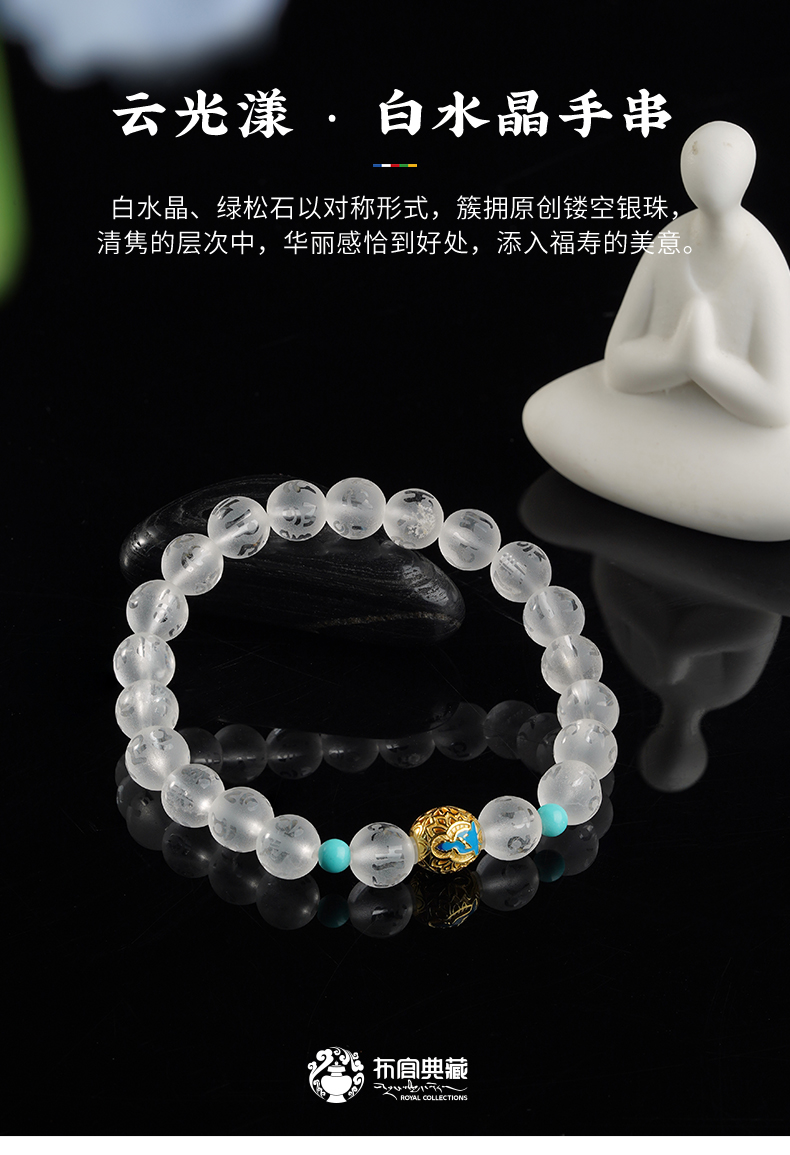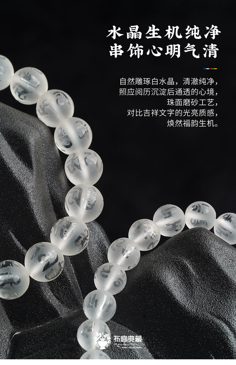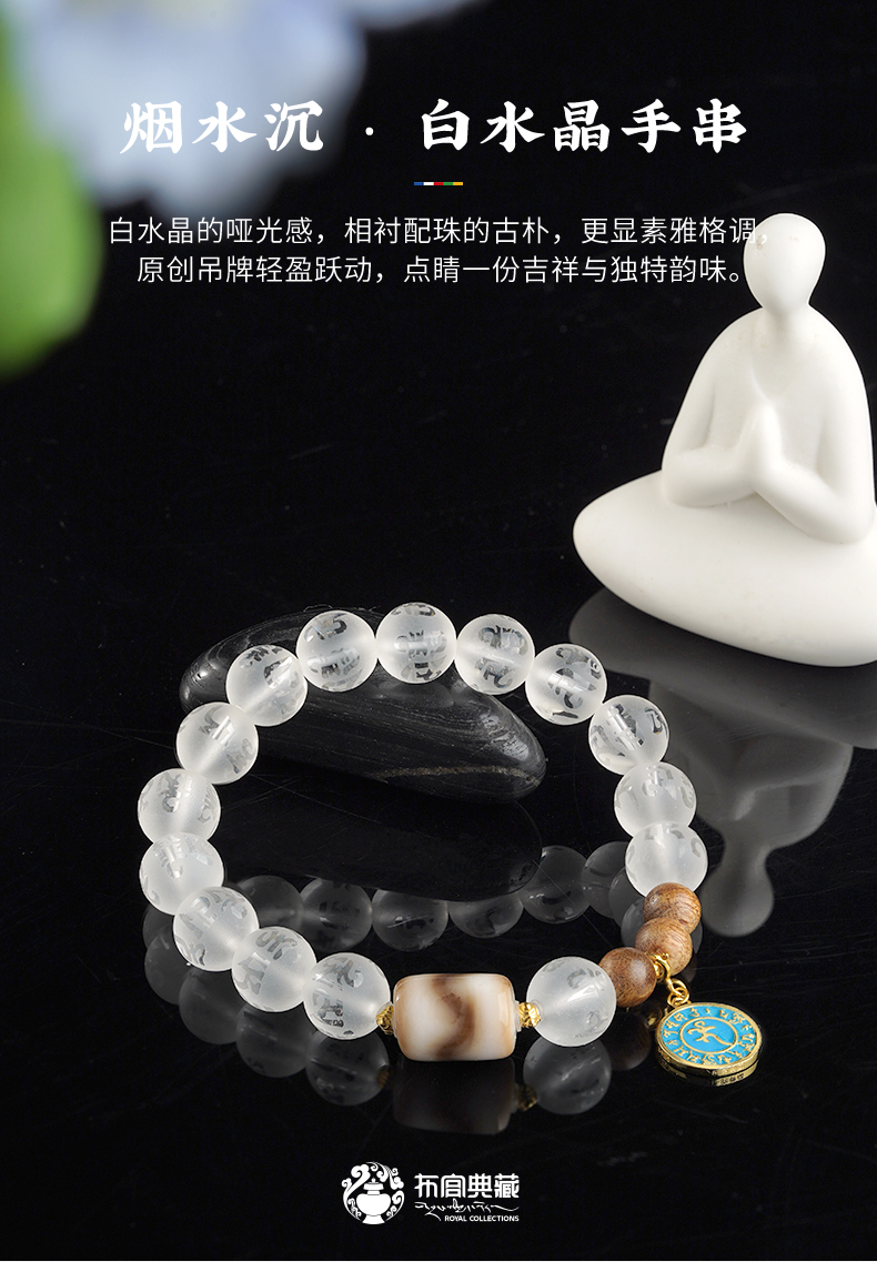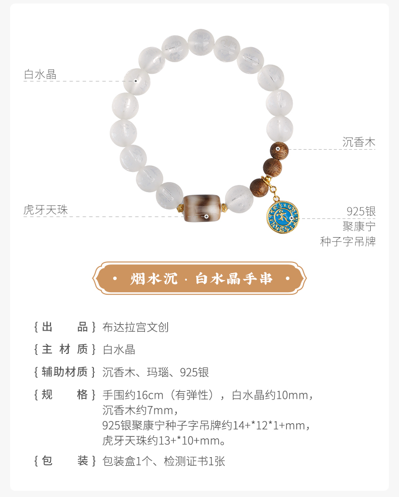 布达拉宫白水晶925银配件手串白水晶沉香木虎牙天珠种子字手串