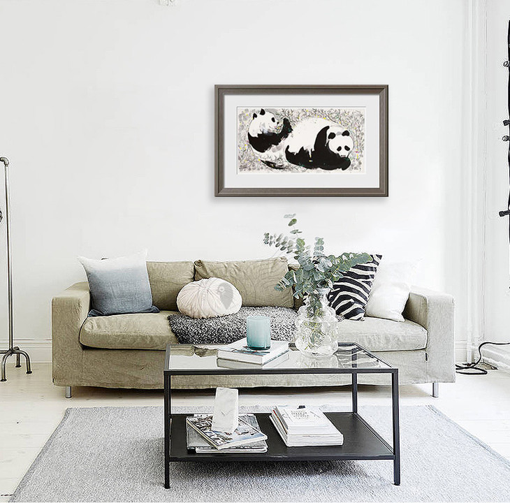 猛虎斑斓,熊猫只具黑白,而且懒散。我题自己的熊猫:体胖心宽,黑白分明,箭竹丛里度光阴。但我并非为熊猫而画熊猫,只缘想表现那群粗壮的黑块与肥的白块相拥抱与翻滚。虎群启示了黄土高原,熊猫令我追求天翻地覆与永恒。