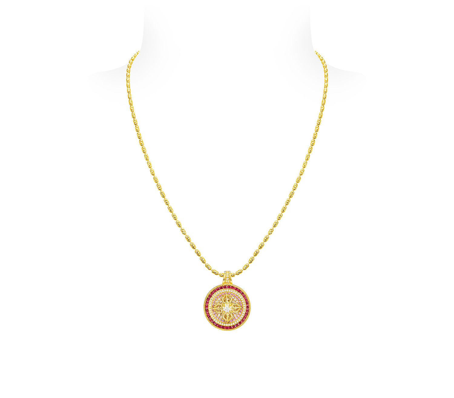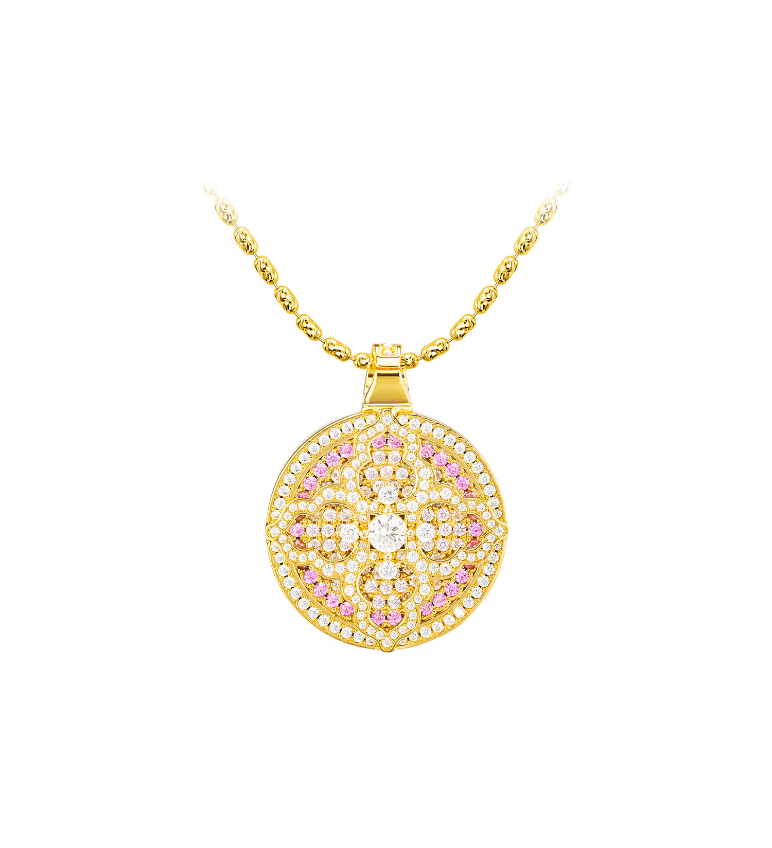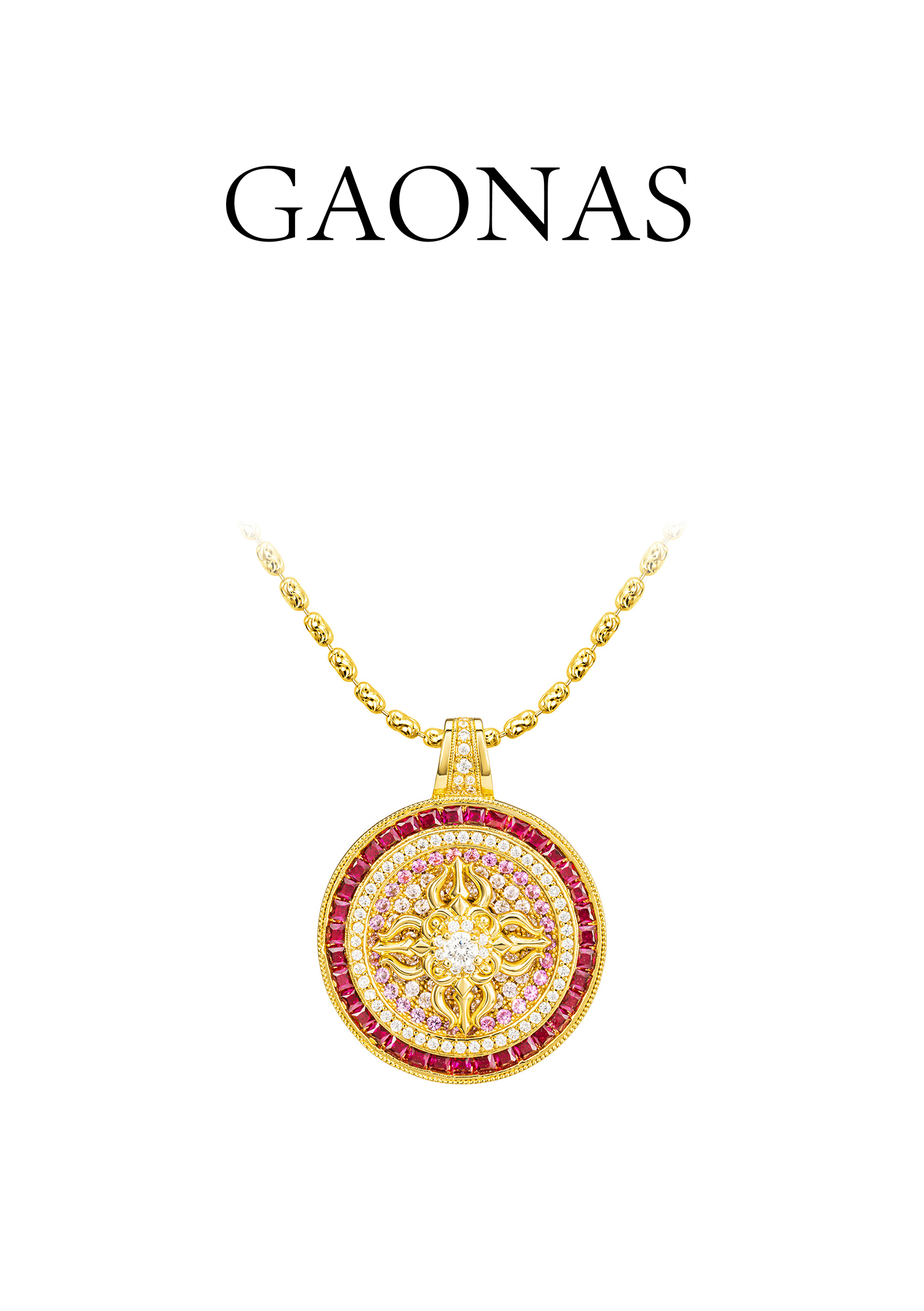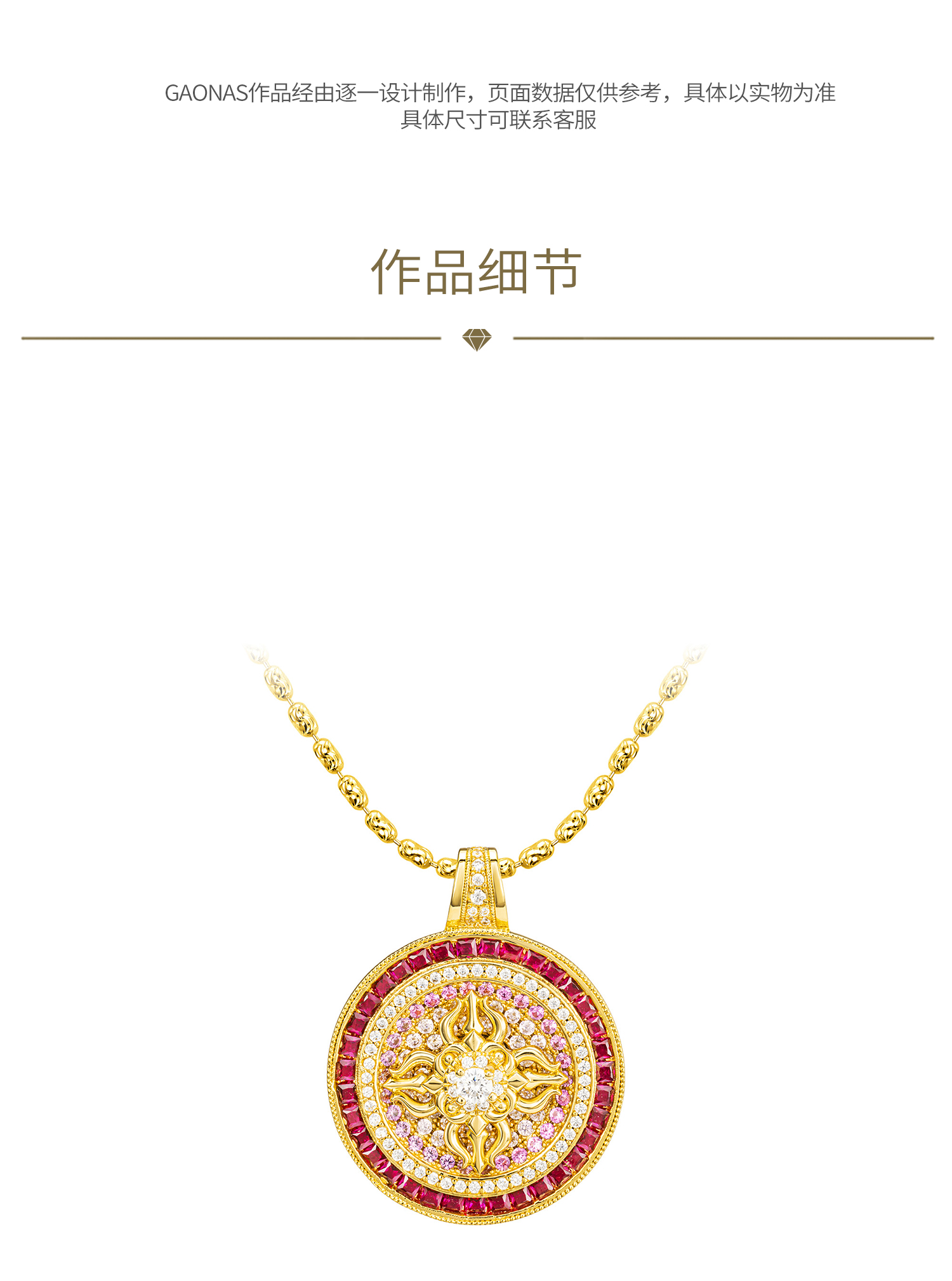 GAONAS高纳仕 镜花宝相中式贵气金色圆项链11918XGO