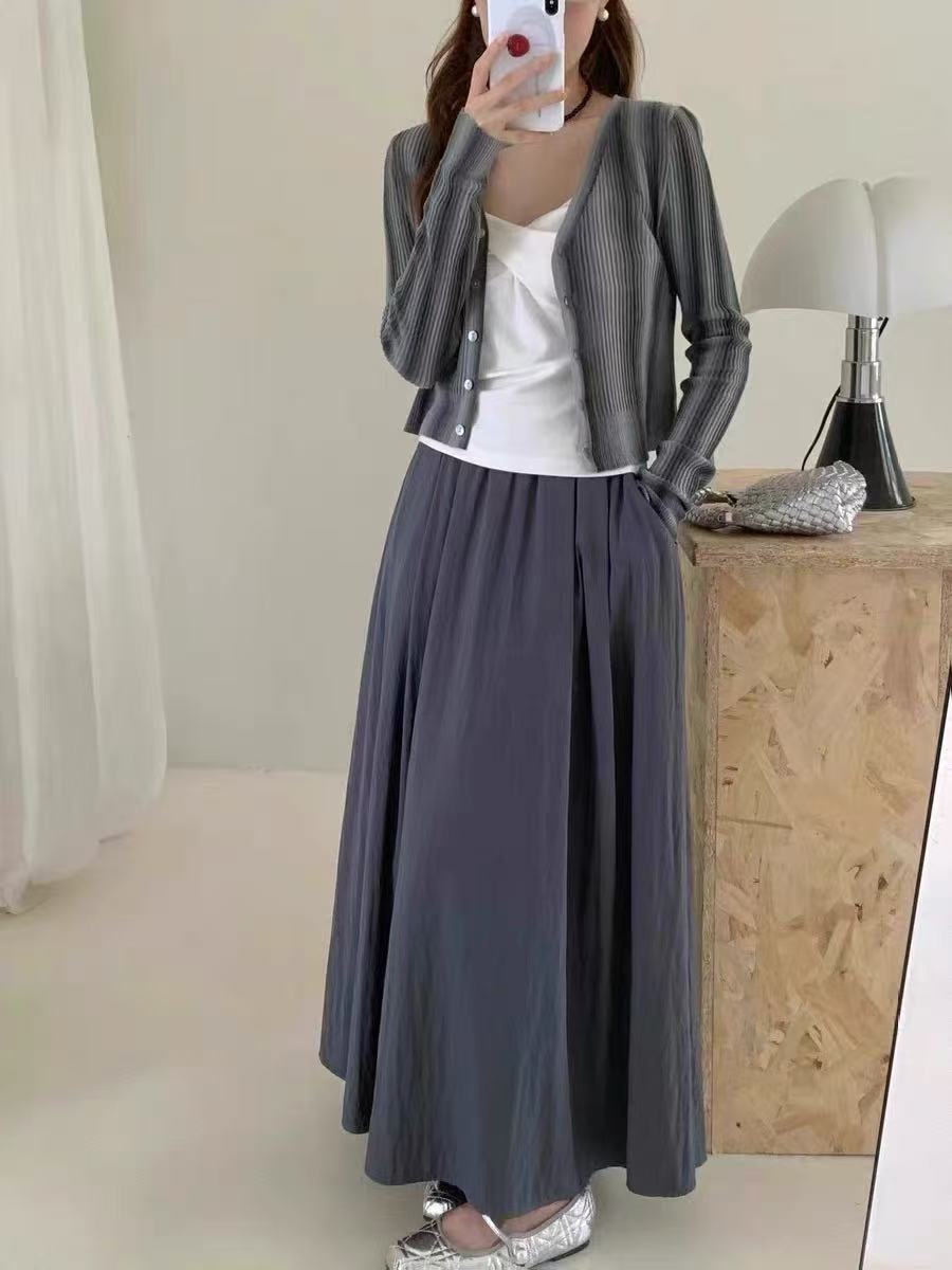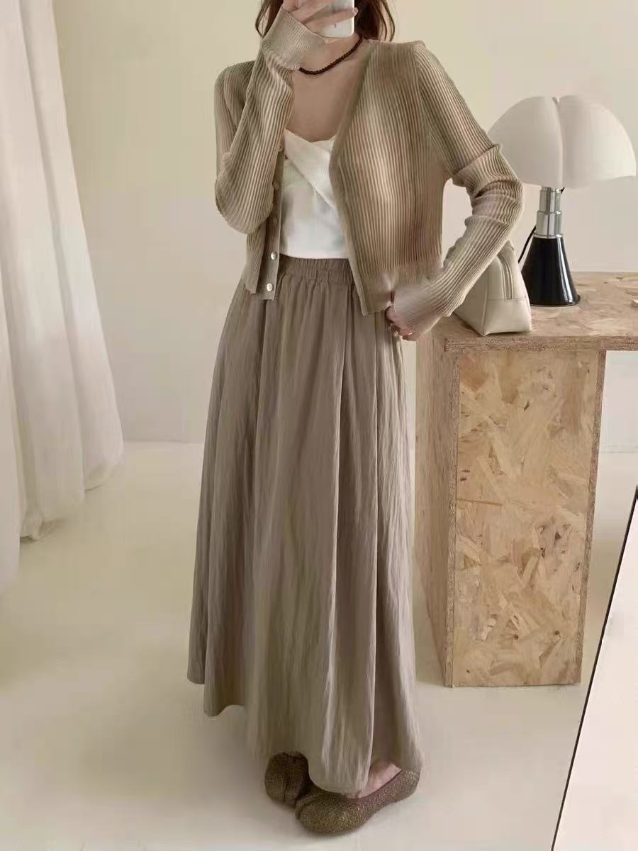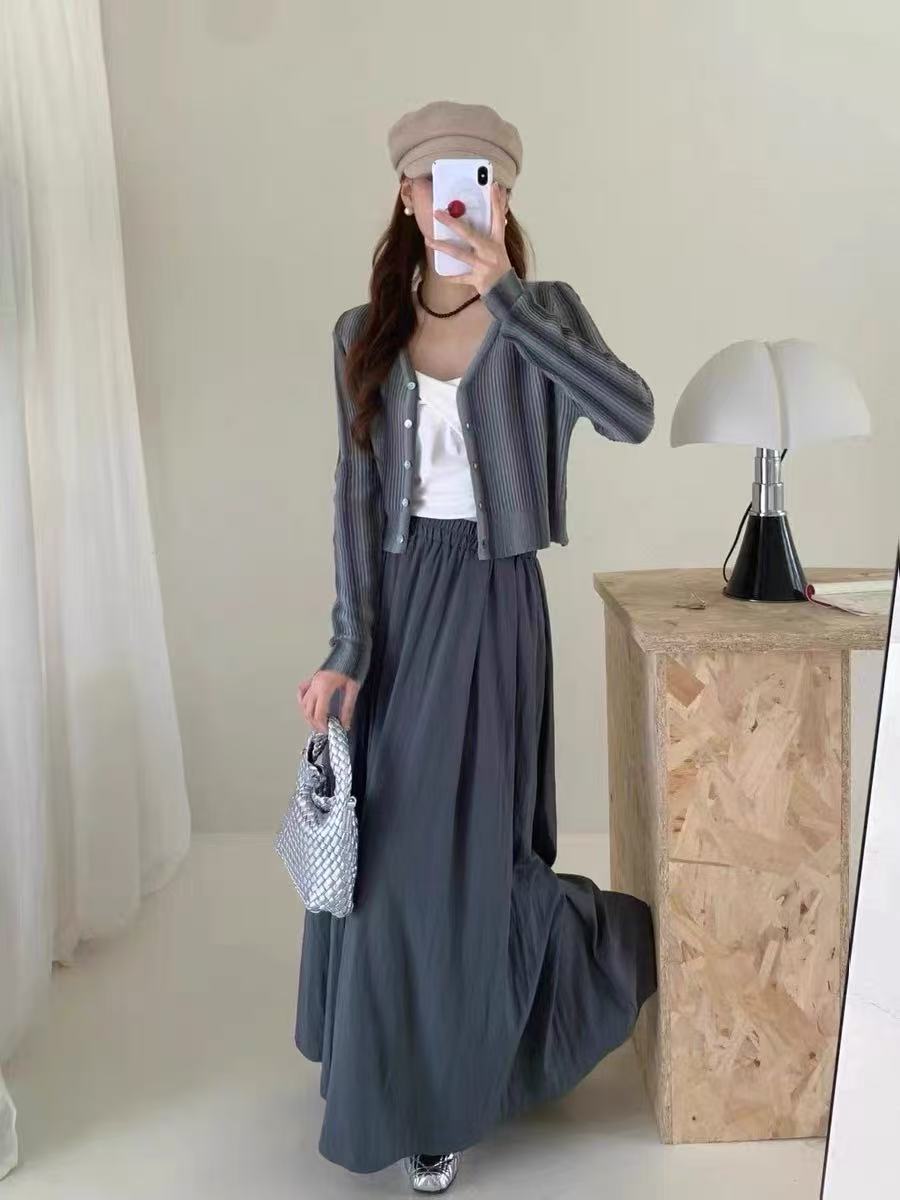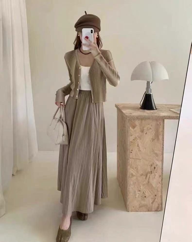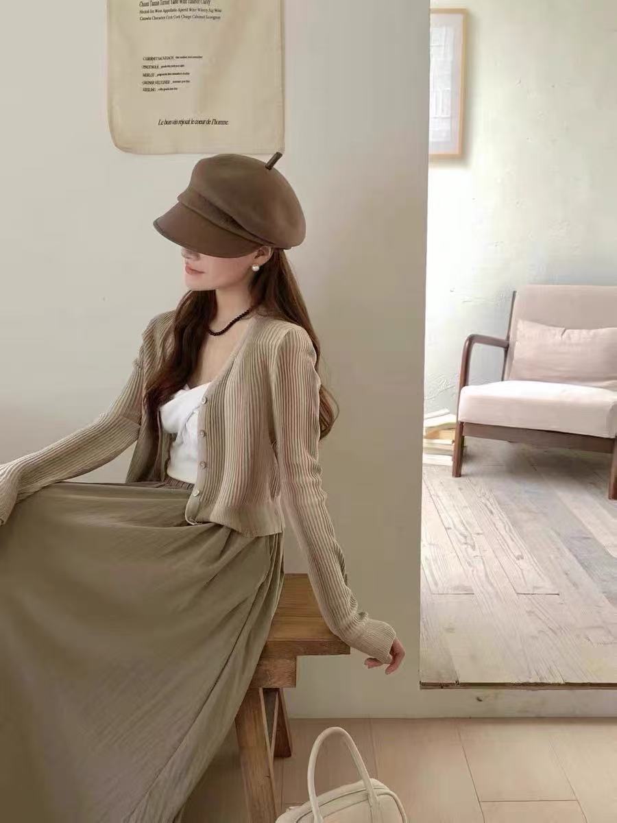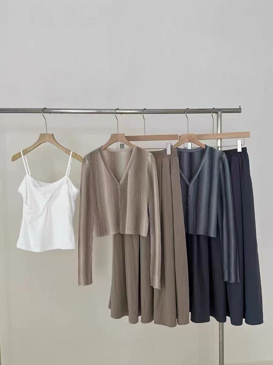 活动爆款【自营】衣周期~(三件套)Q38针织开衫➕吊带➕松紧腰半身裙-喜出
