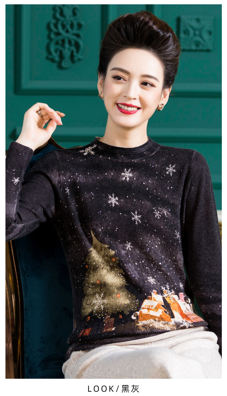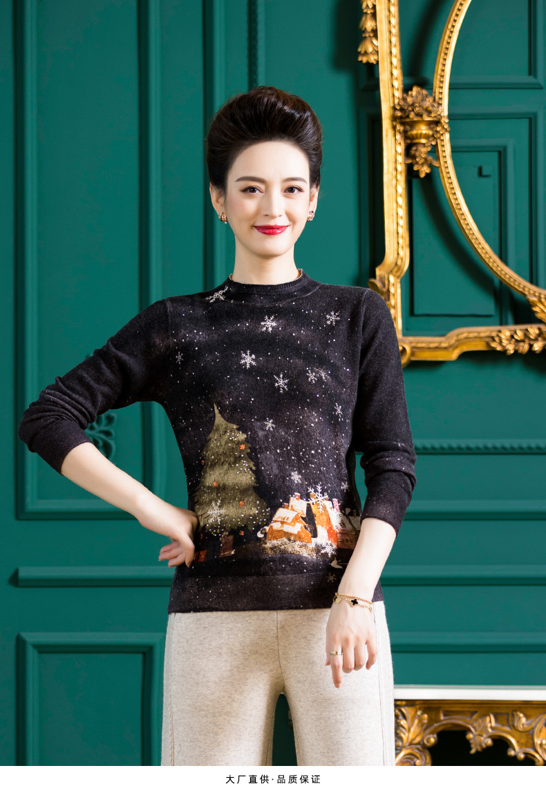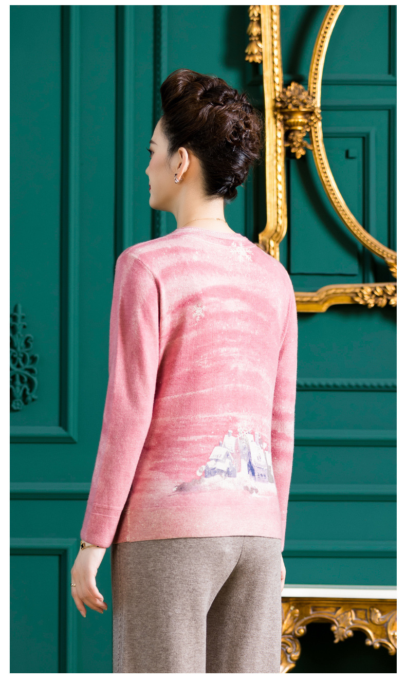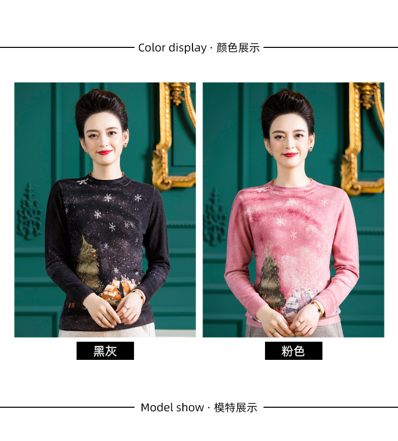 中老年妈妈装针织内搭,时尚印花毛衣WY-M98930
