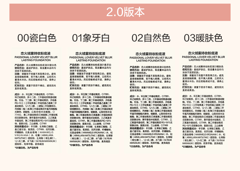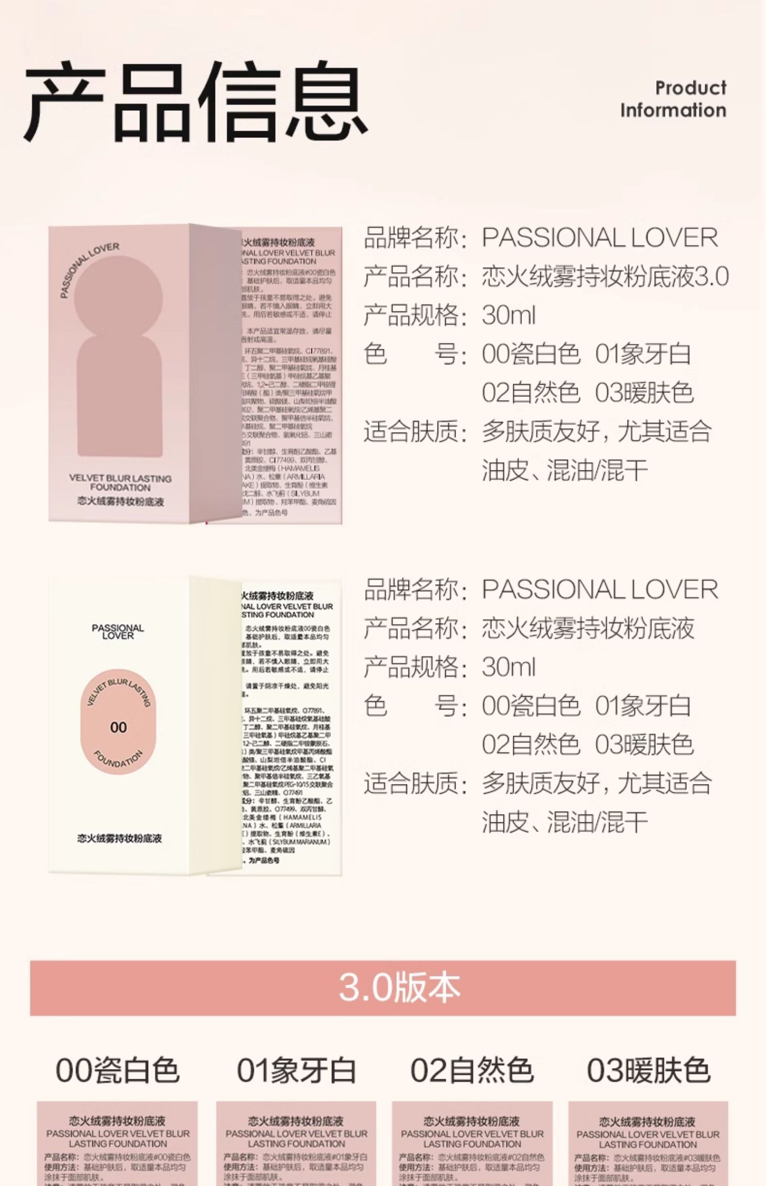 【全网热卖】恋火(Passional Lover)绒雾持妆粉底液3.0 蹭不掉粉底液30ml控油遮瑕持妆粉底