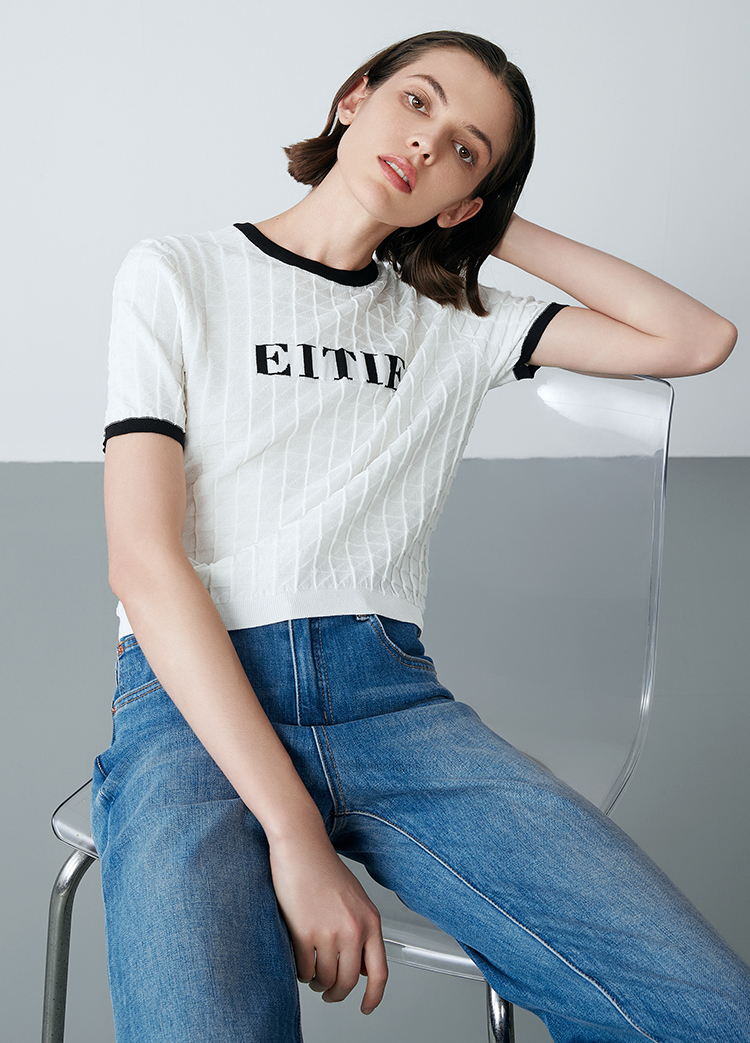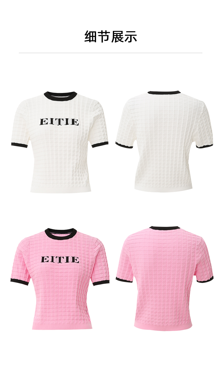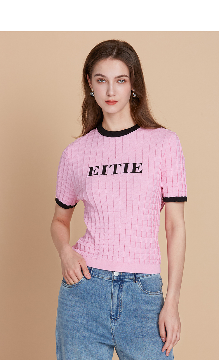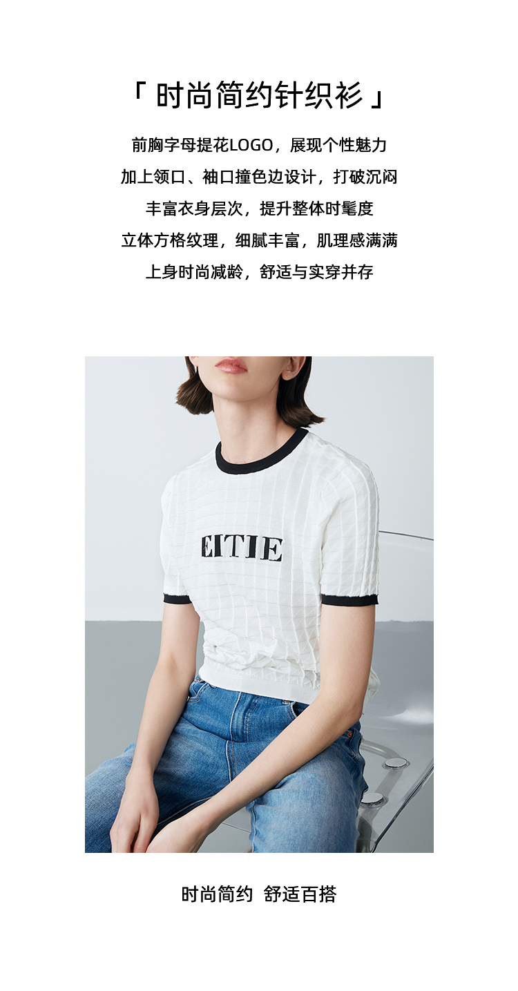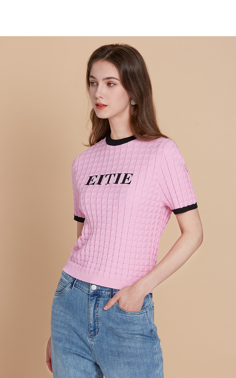 EITIE爱特爱春季新款撞色显瘦百搭基础简约针织衫7701412
