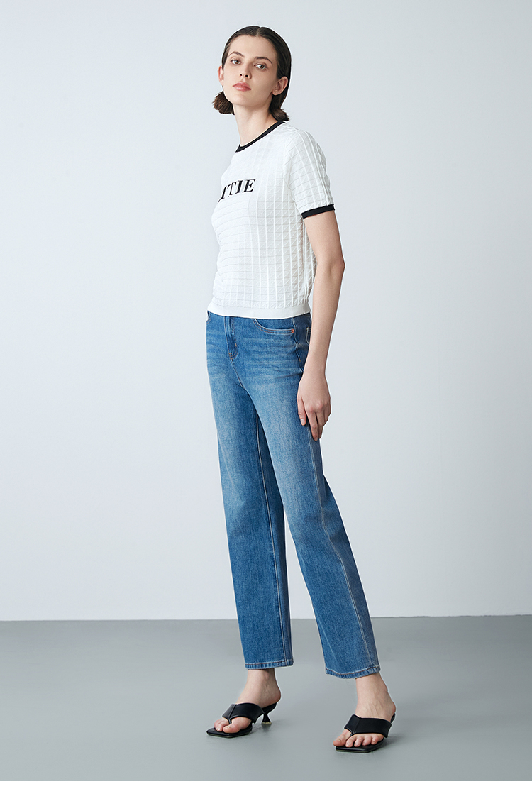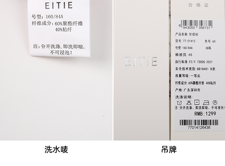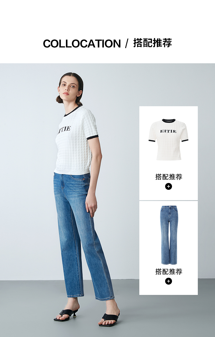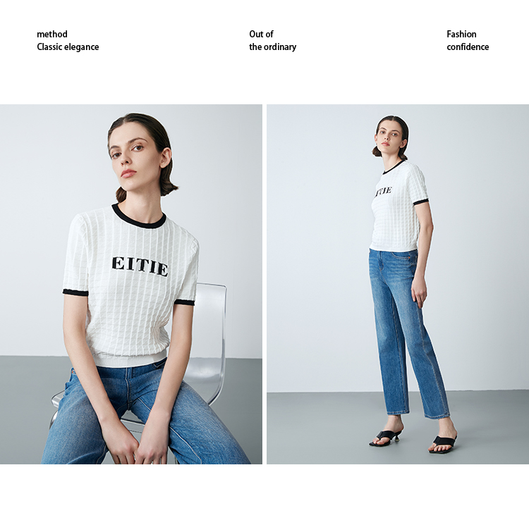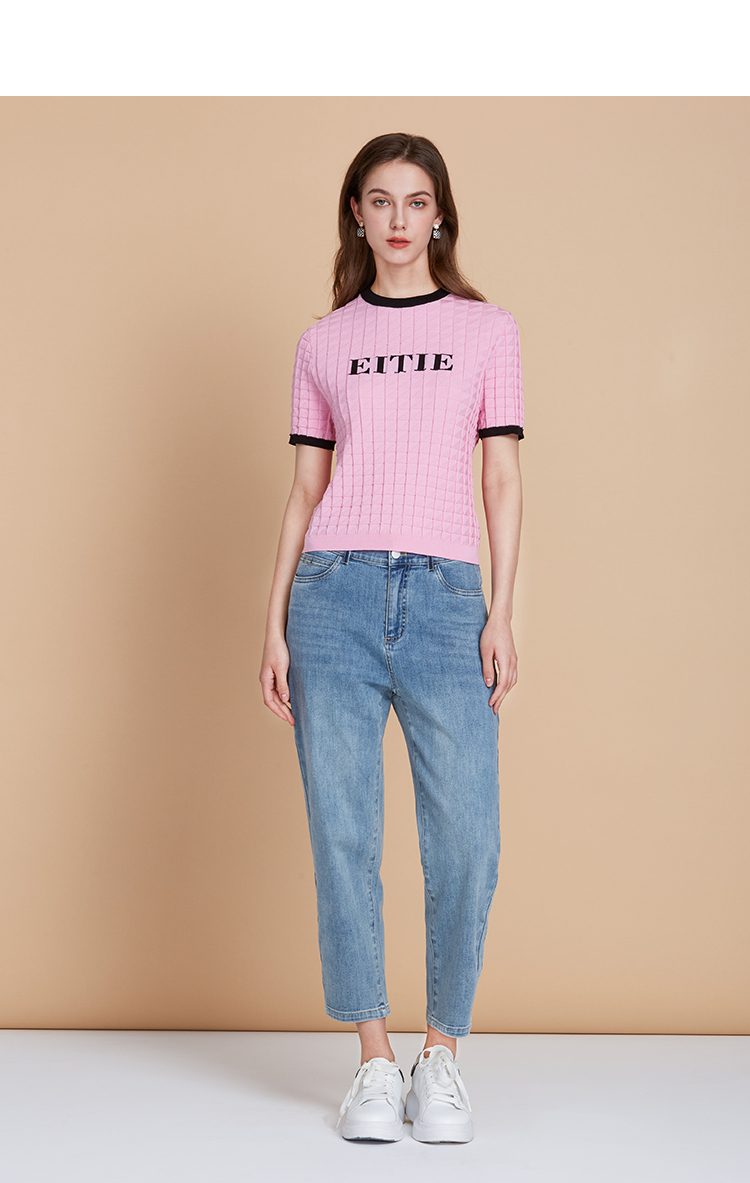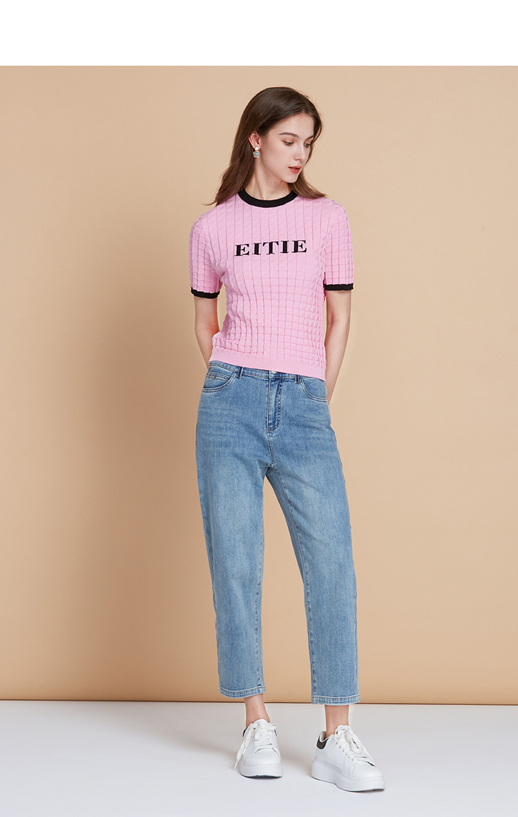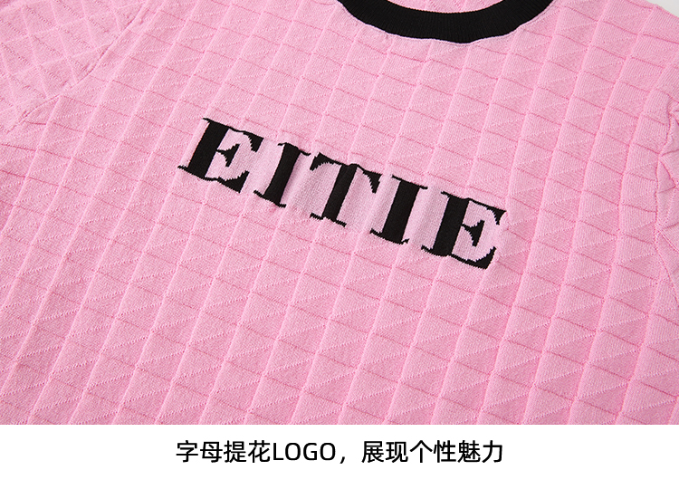 EITIE爱特爱春季新款撞色显瘦百搭基础简约针织衫7701412