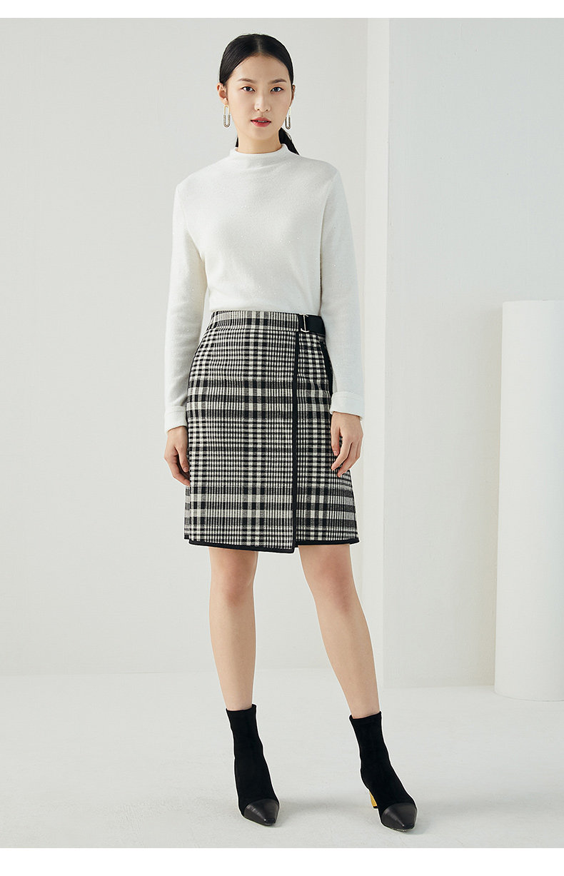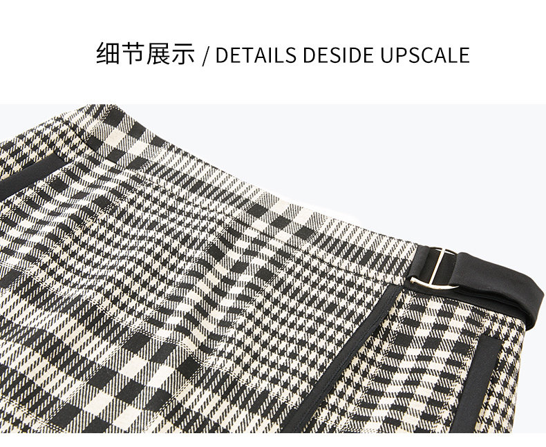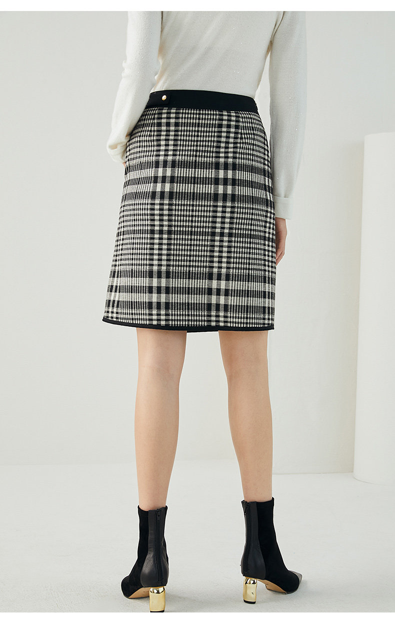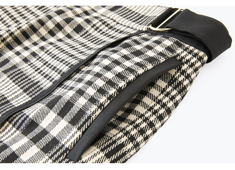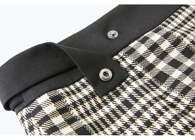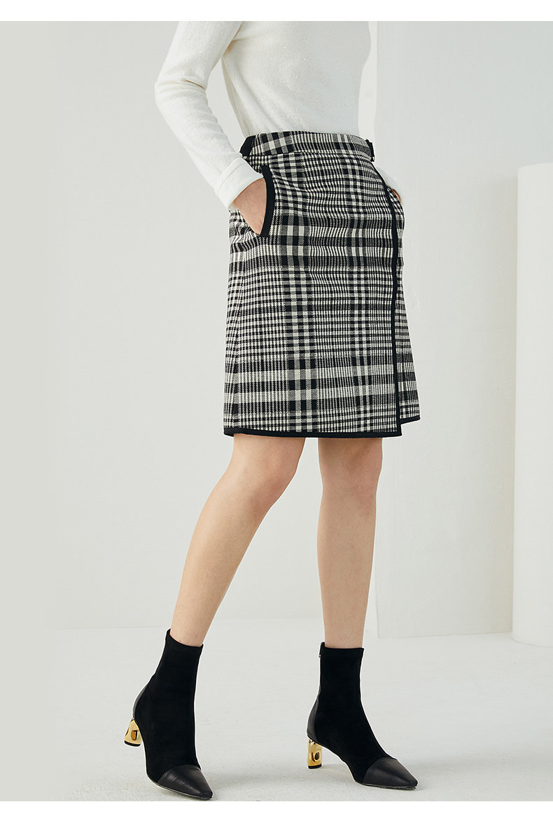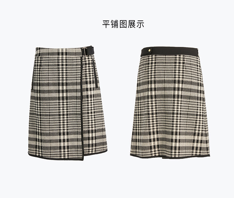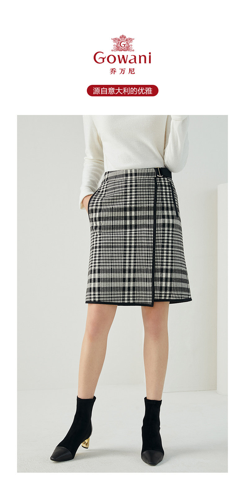 乔万尼秋冬经典黑白格撞色织带时尚百搭洋气英伦风显瘦半裙ES4D420