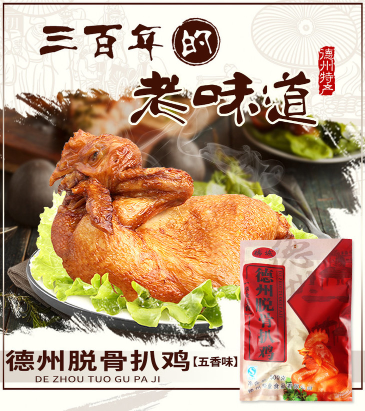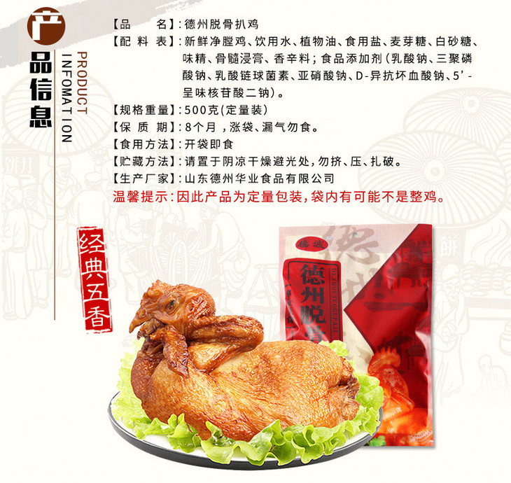 德城德州五香脱骨扒鸡 500g*2袋 真空包装 熟食卤味 山东特产