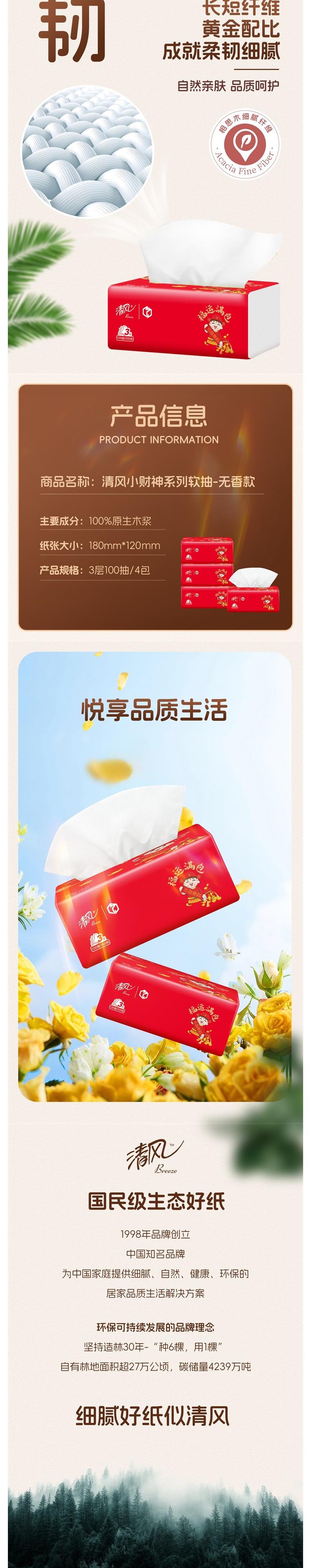 清风 小财神系列抽纸3层100抽4包 6922266485855-3