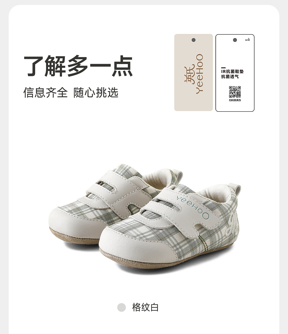 【商场同款】英氏儿童鞋春秋男童防滑步前鞋女童魔术贴布鞋新款
