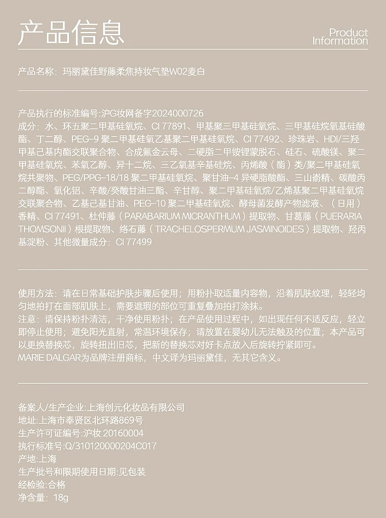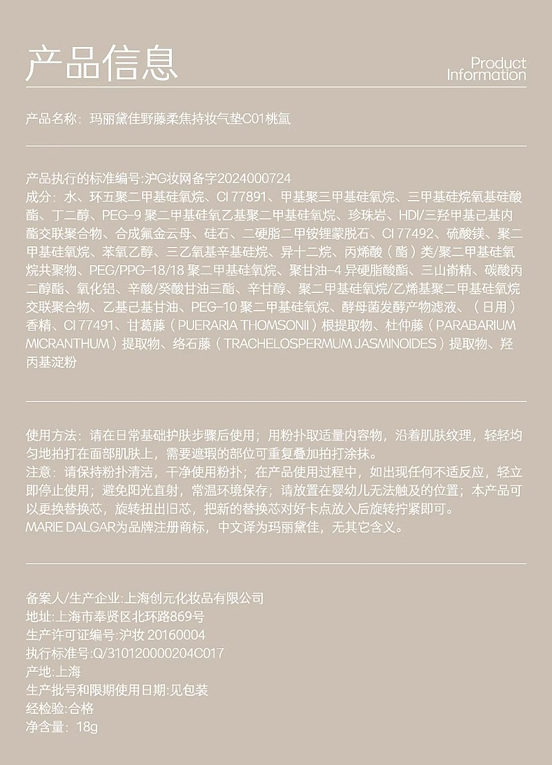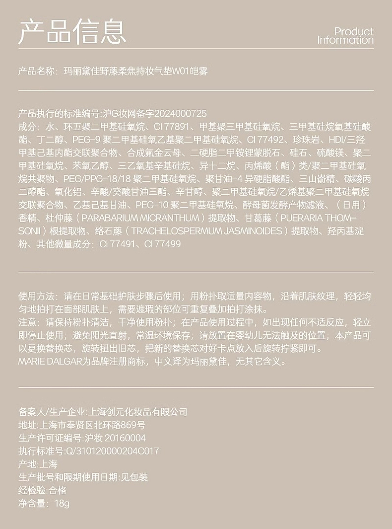【重磅新品】MARIE DALGAR 玛丽黛佳野藤柔焦持妆气垫油皮混油皮不易脱妆女