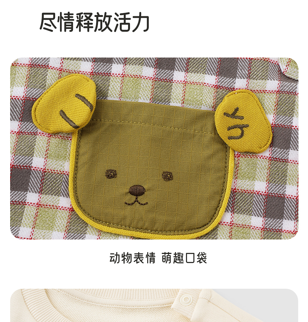 【商场同款】英氏婴儿衣服假两件男童连体衣可爱背带男宝外出衣服