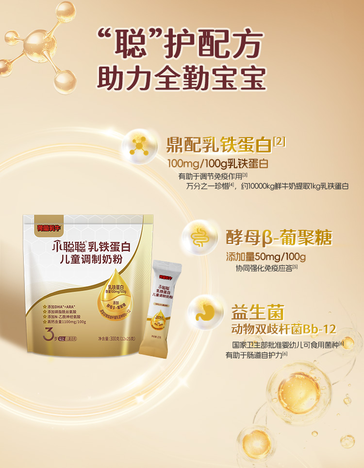 【儿童奶粉推荐】荷兰乳牛小聪聪乳铁蛋白儿童调制奶粉300g(12*25g)