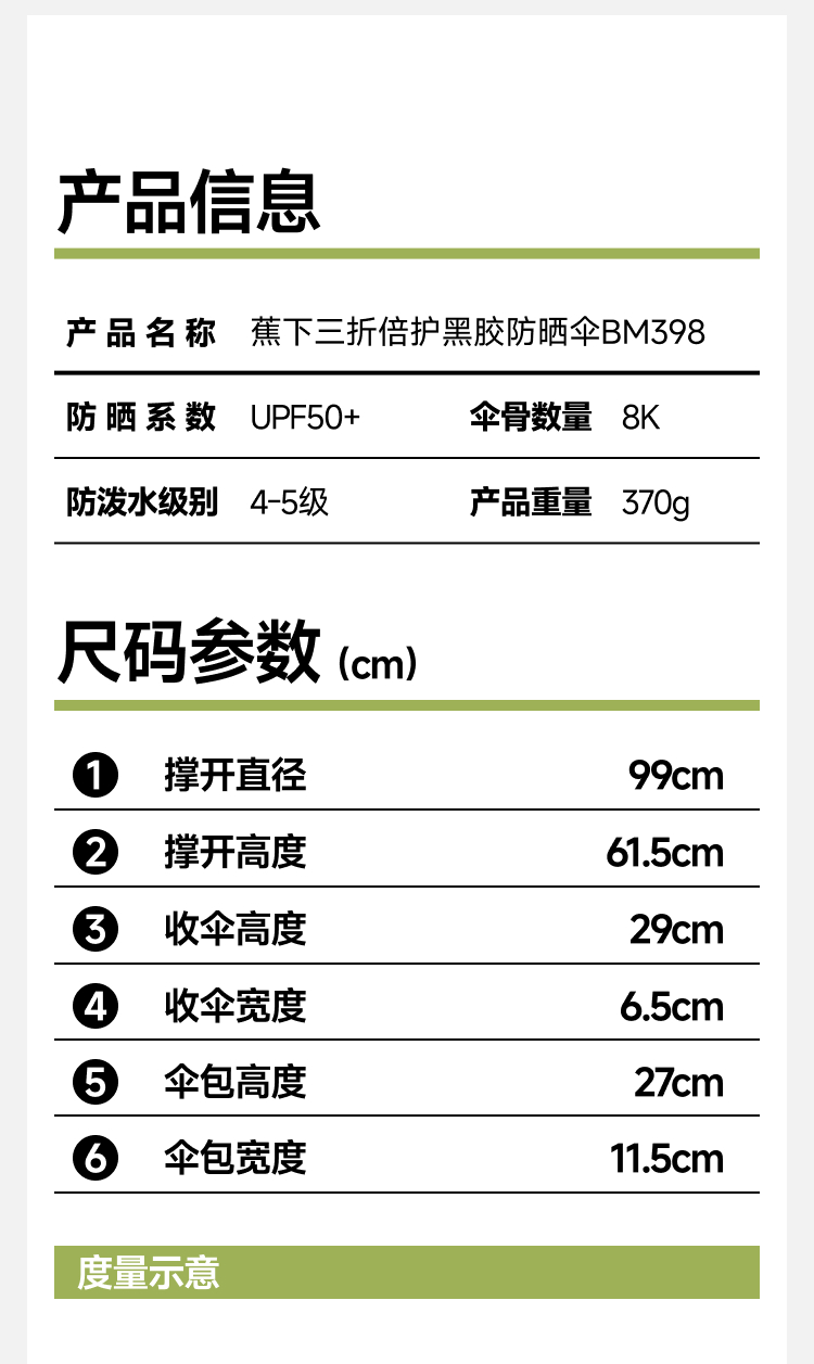 【特渠专享】蕉下三折倍护黑胶防晒伞BM398