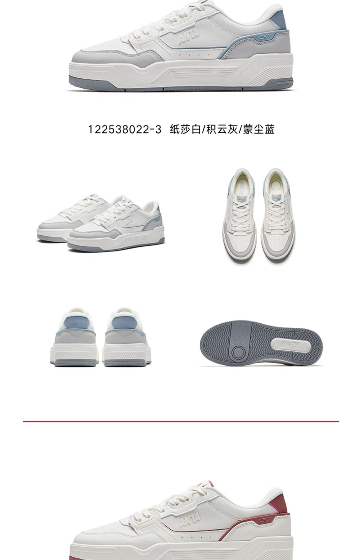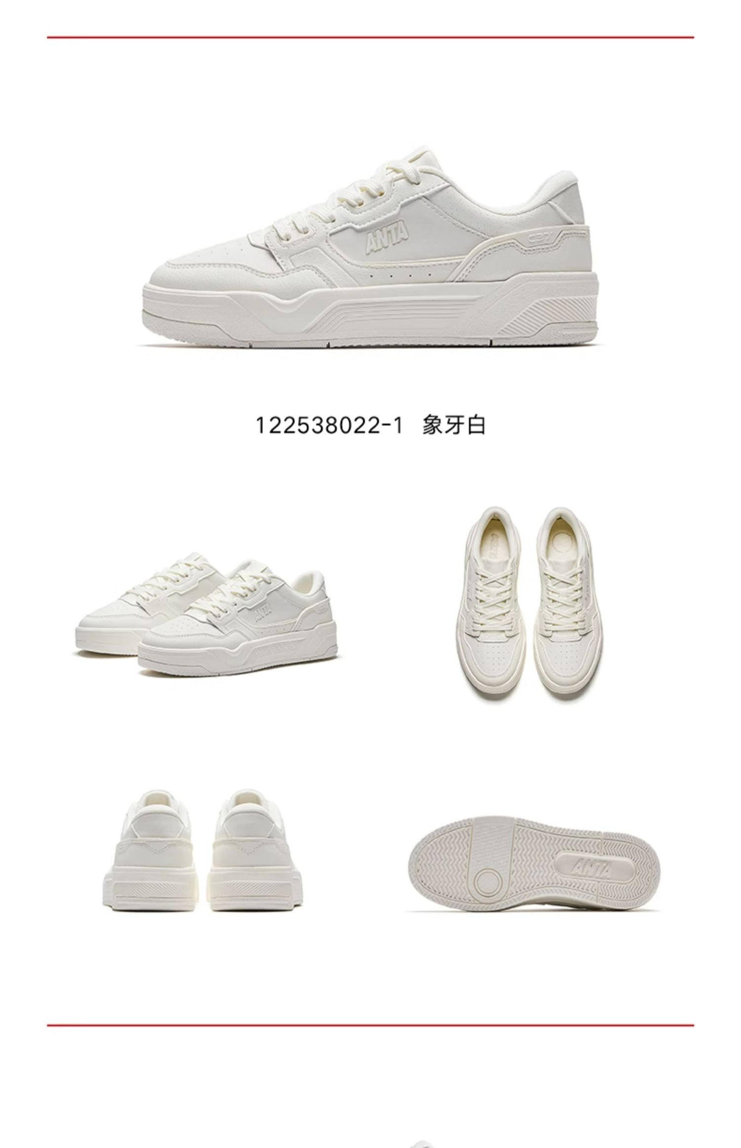 安踏C37板鞋丨软底舒适板鞋女休闲简约小白鞋滑板运动鞋122538022