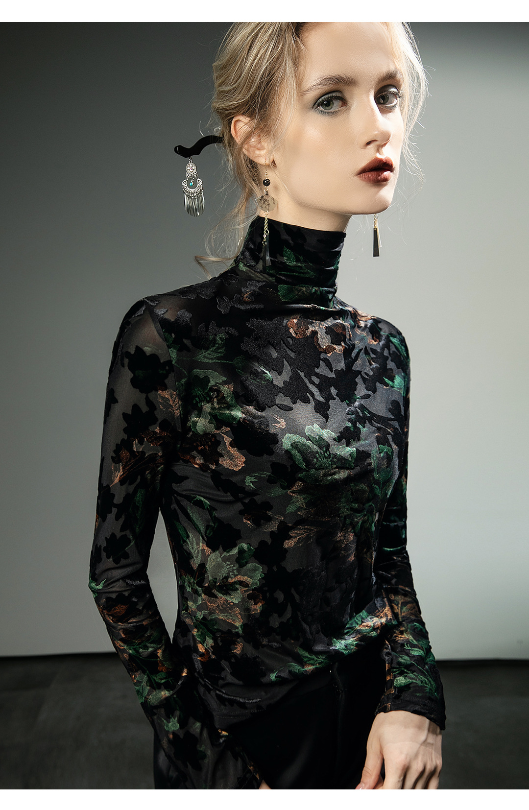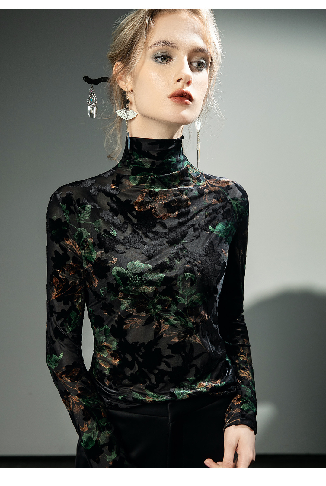 F20245311国风刺绣提花长袖秋冬新款气质打底上衣弹力修身新中式高领小衫 商品图1