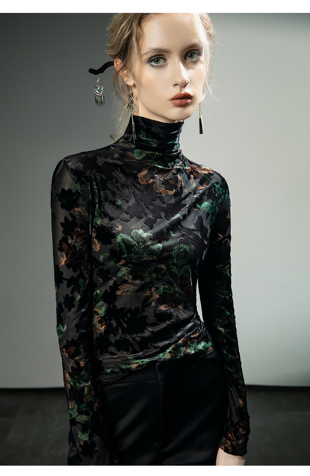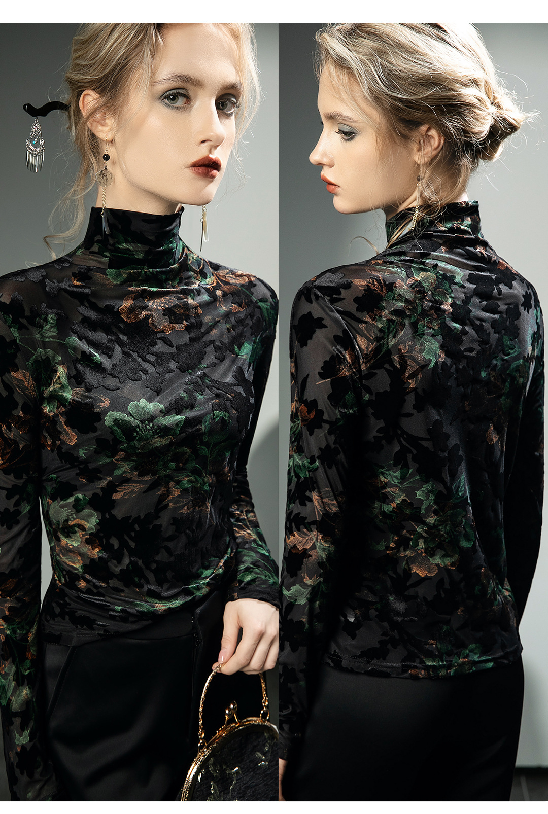 F20245311国风刺绣提花长袖秋冬新款气质打底上衣弹力修身新中式高领小衫 商品图4