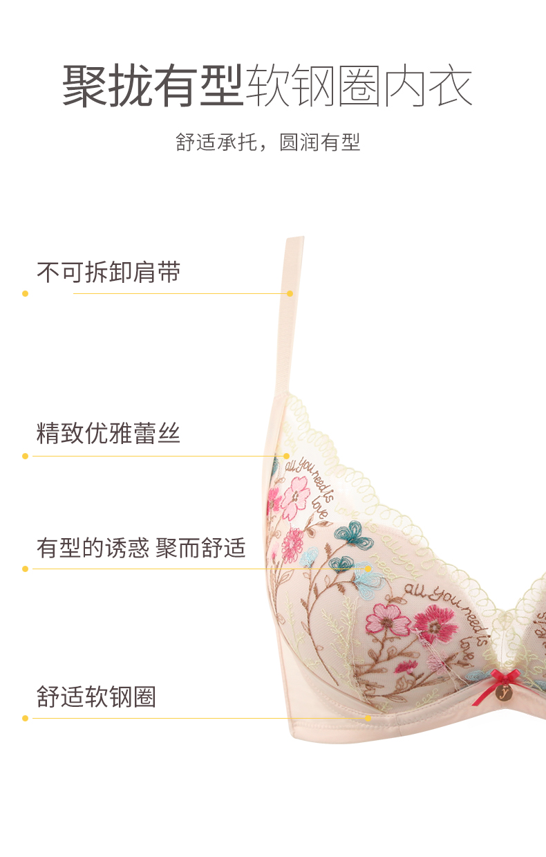 贝佳人正品文胸中厚杯新款小胸聚拢抬托内衣女胸罩BW912052