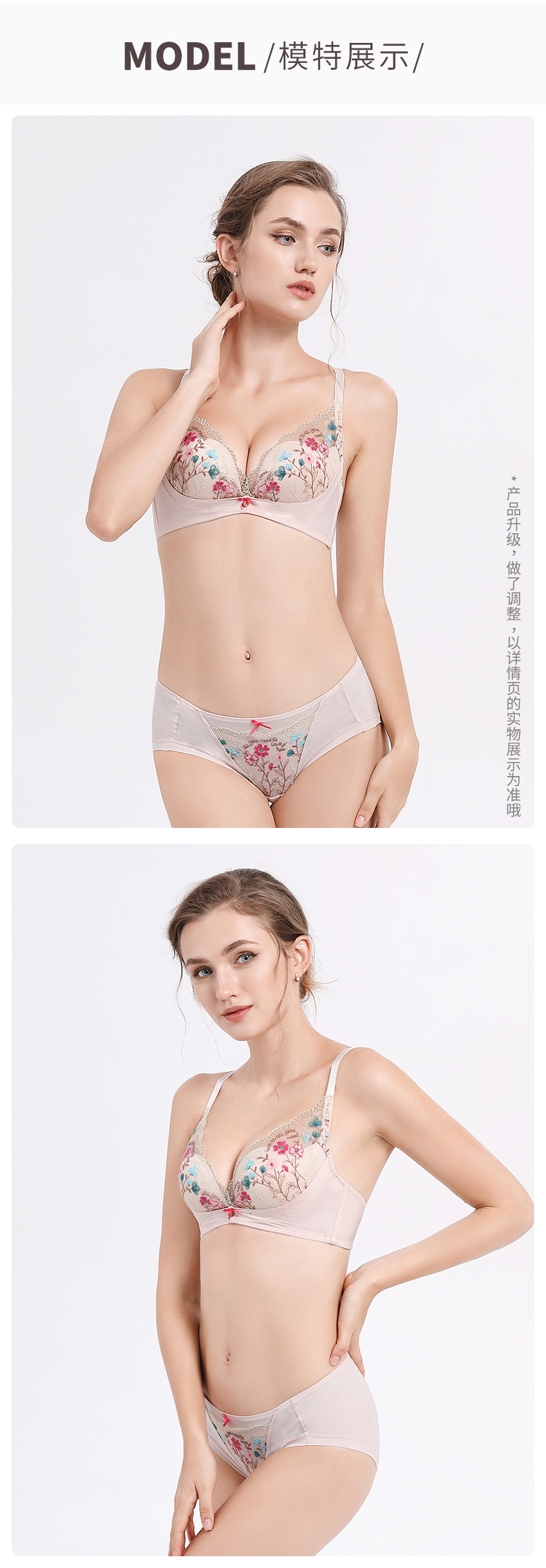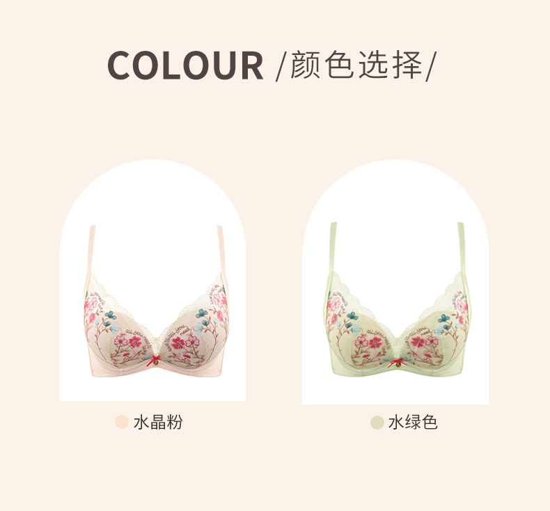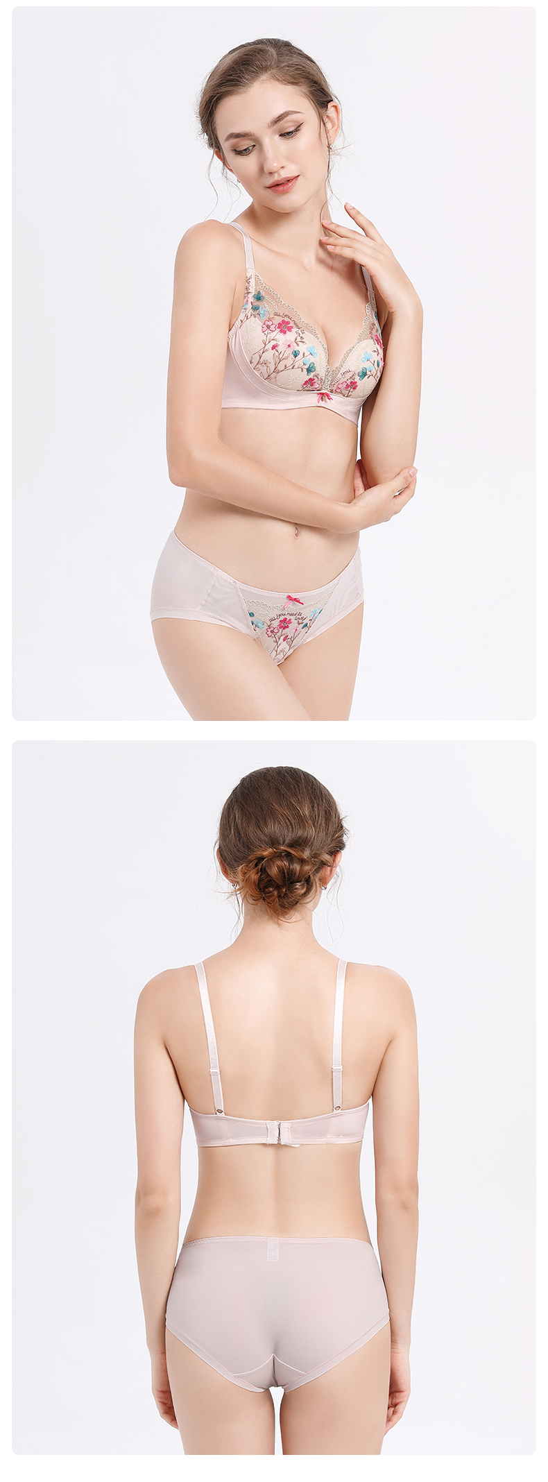 贝佳人新品花纹蕾丝调整型文胸无钢圈零束缚美背内衣透气聚拢BW952022