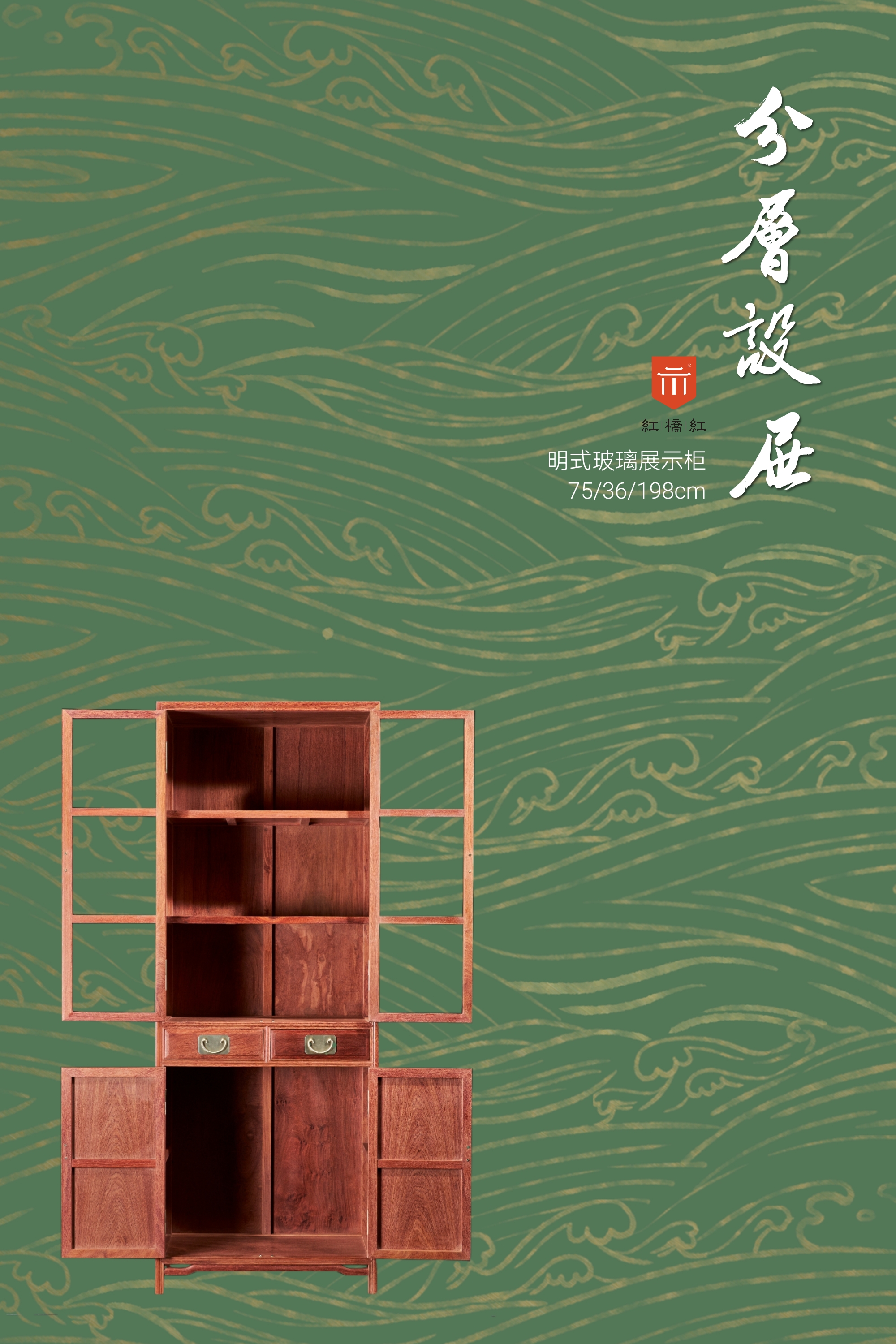 75 层架形明式玻璃 书柜