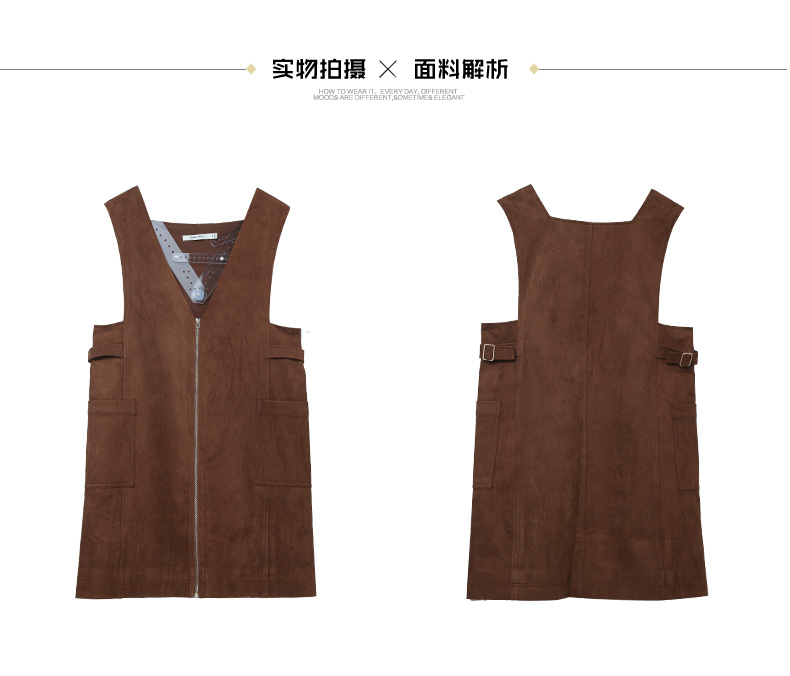 复古风拉链麂皮绒背带连衣裙女 秋季新款气质减龄无袖裙装