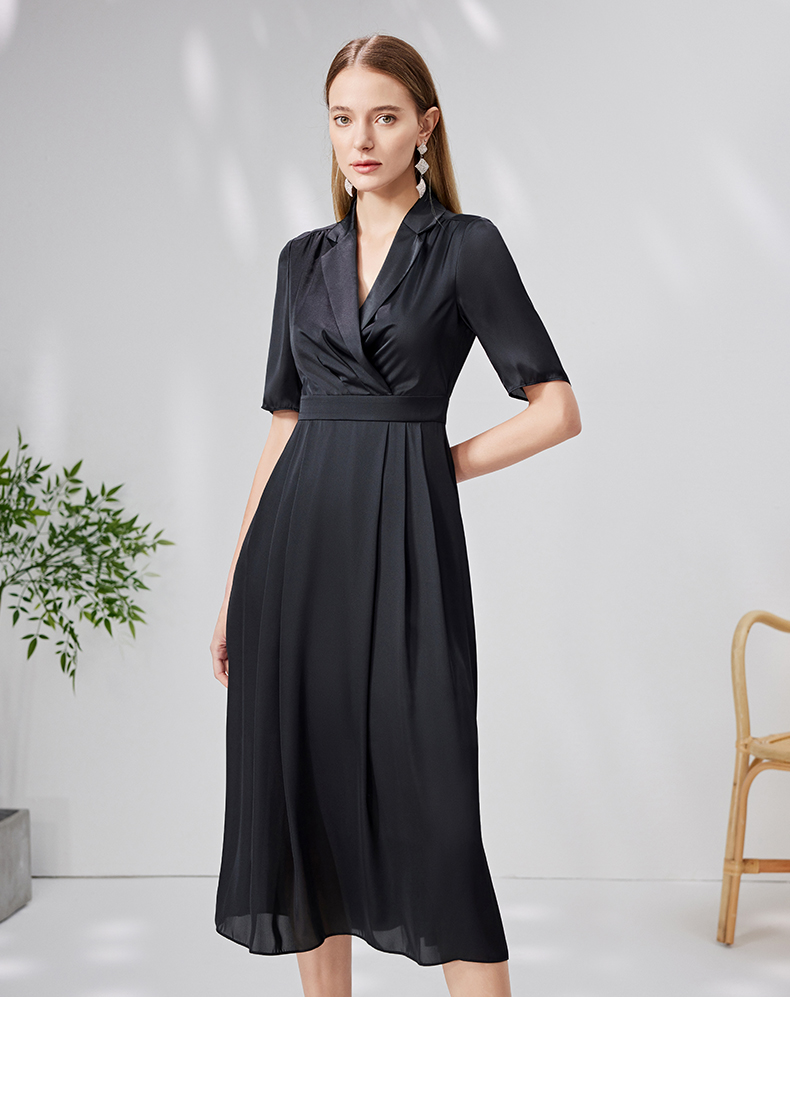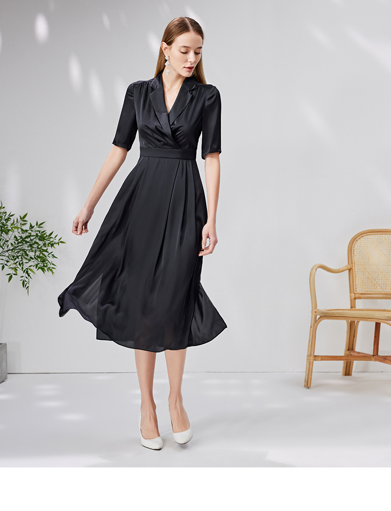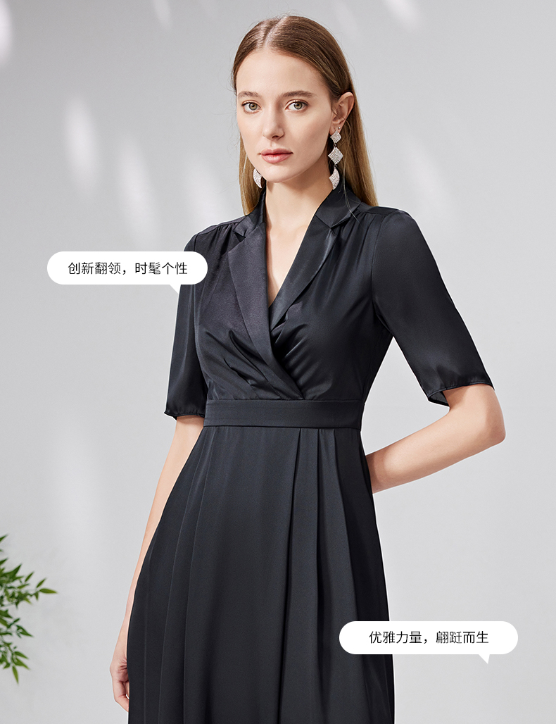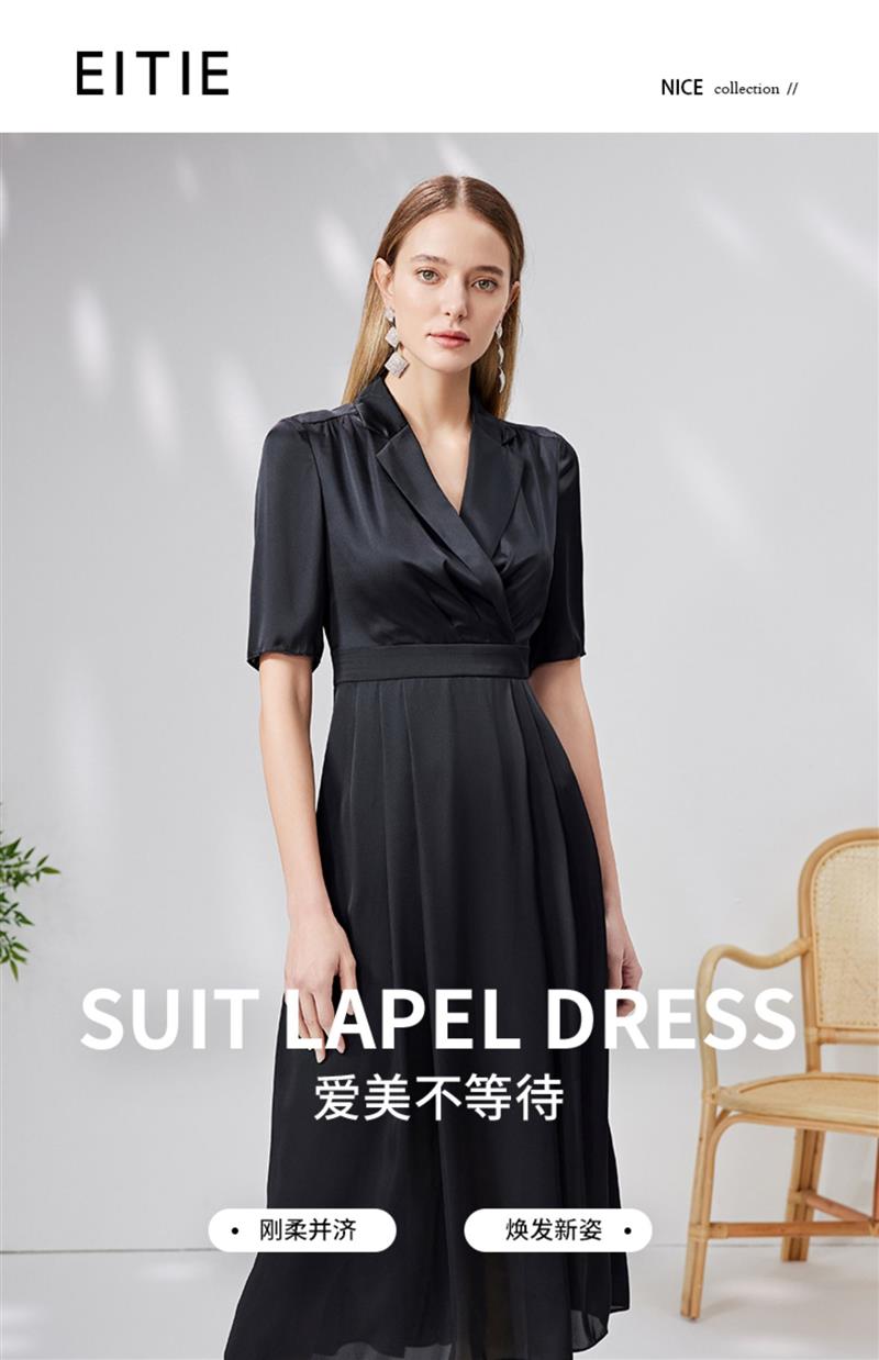 EITIE爱特爱气质中袖西装领收腰连衣裙垂坠高级通勤夏新款B07136