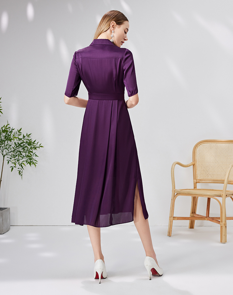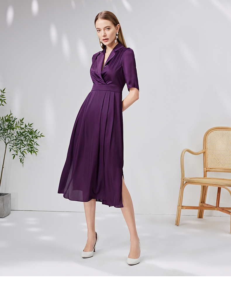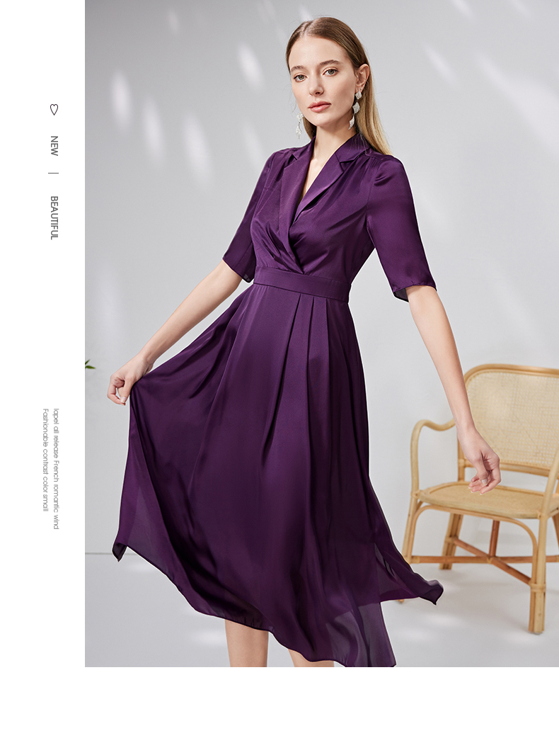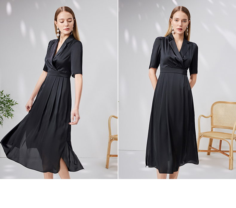 EITIE爱特爱气质中袖西装领收腰连衣裙垂坠高级通勤夏新款B07136
