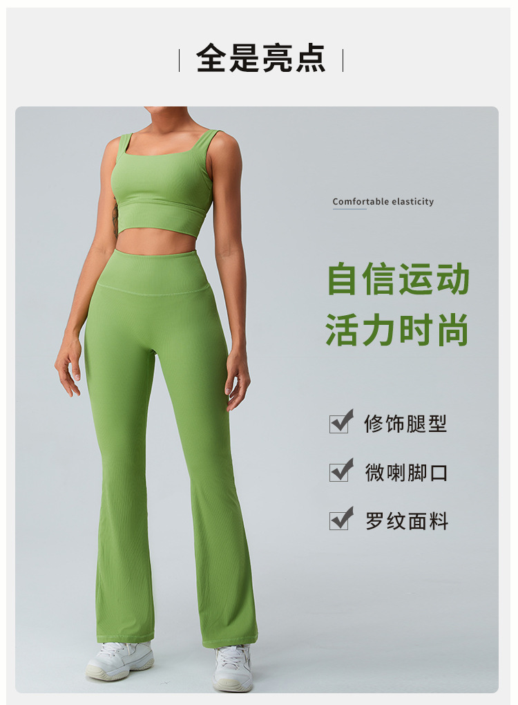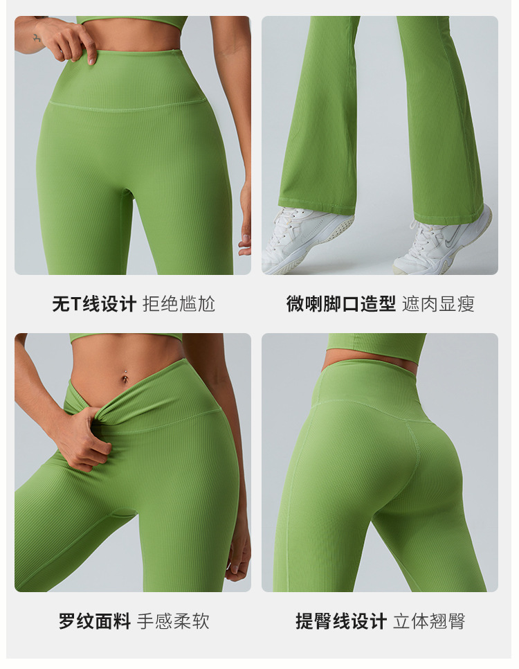 跃牌【化蝶双飞】系列 螺纹高腰提臀瑜伽喇叭裤显瘦微喇阔腿裤 TM0139