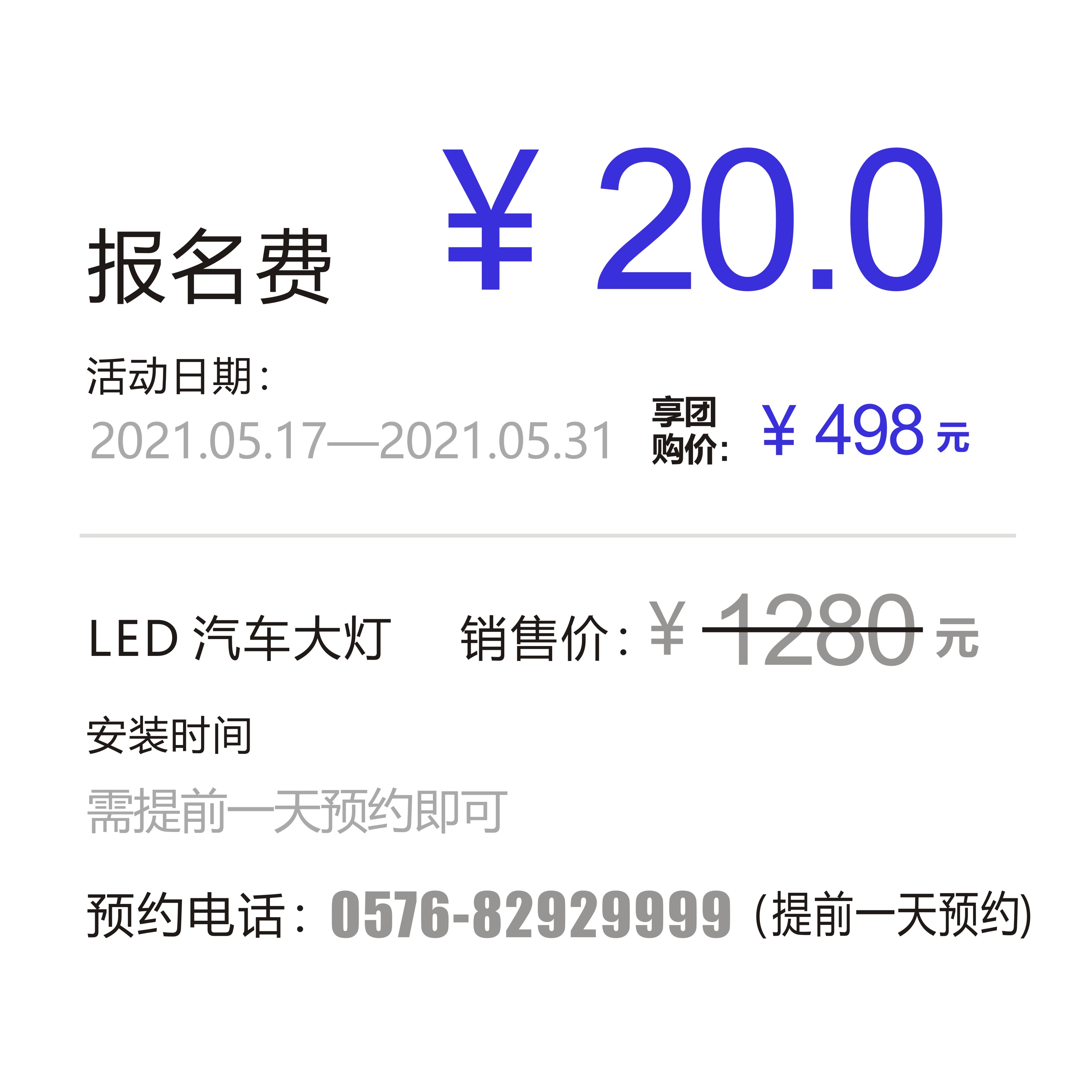 台州泽宇 原厂LED大灯(2只) 现代全系车型 报名费20元(免费安装) 团购价498 原价1280