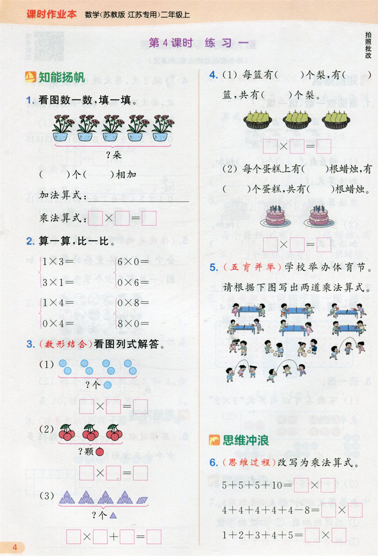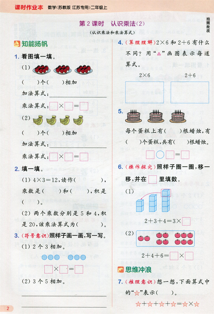2025秋 包邮 课时作业本数学2上 苏教版小学二年级上册 学生用书 小学教辅 浙江教育出版社